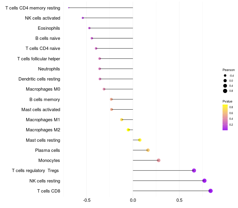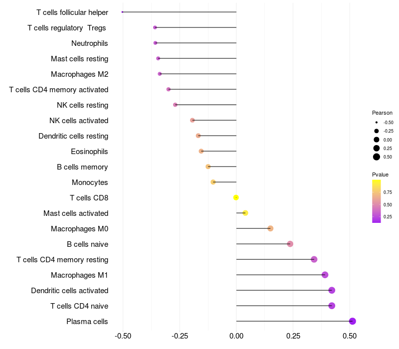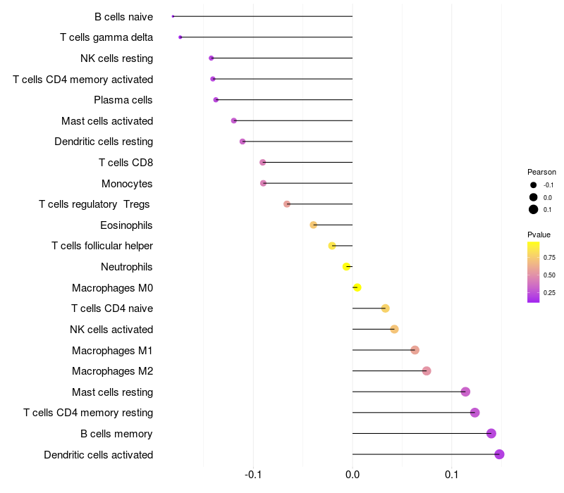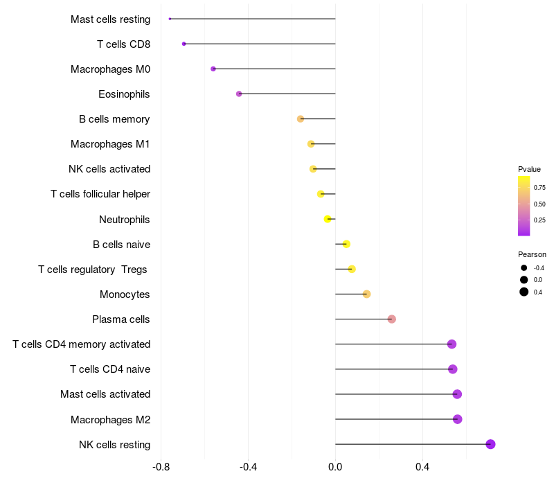 Lollipop of SHANK2 expression and immune infiltrating cell level correlation result in HBV+ Liver cirrhosis samples