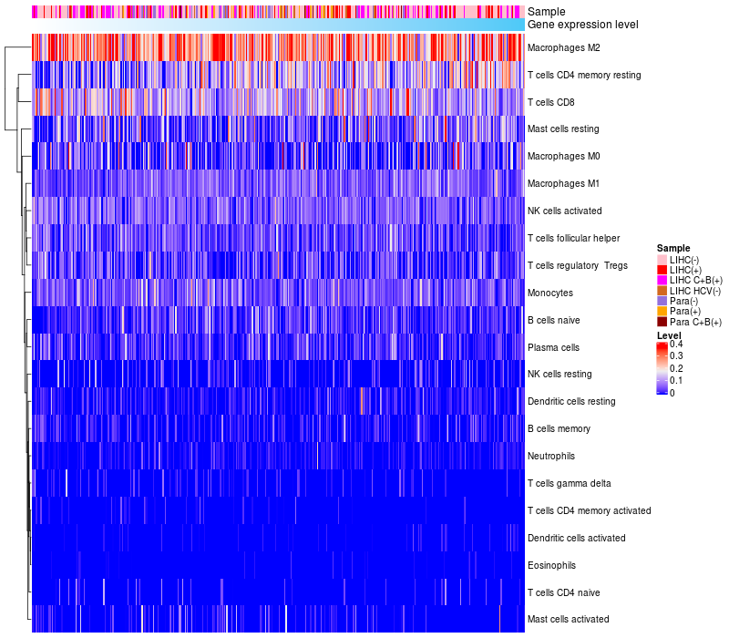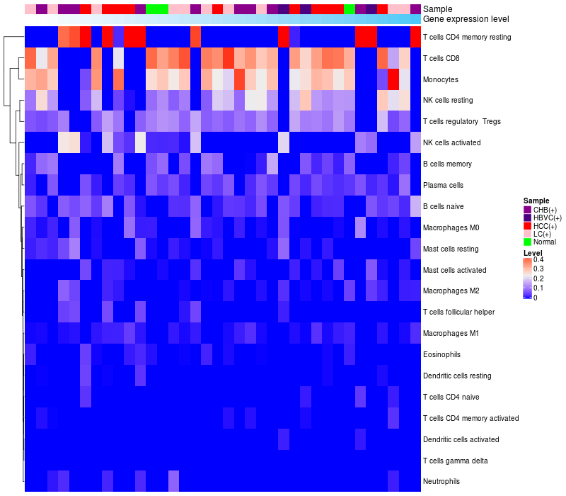 Relationship between gene expression and immune infiltrating cell level