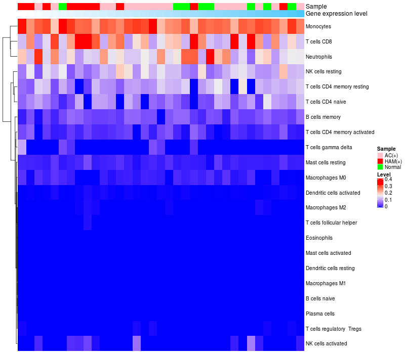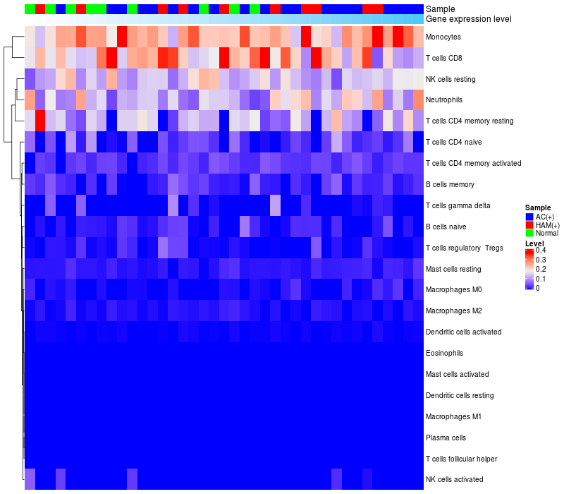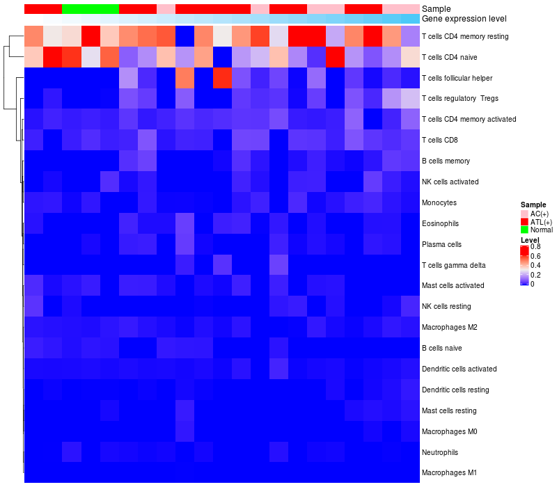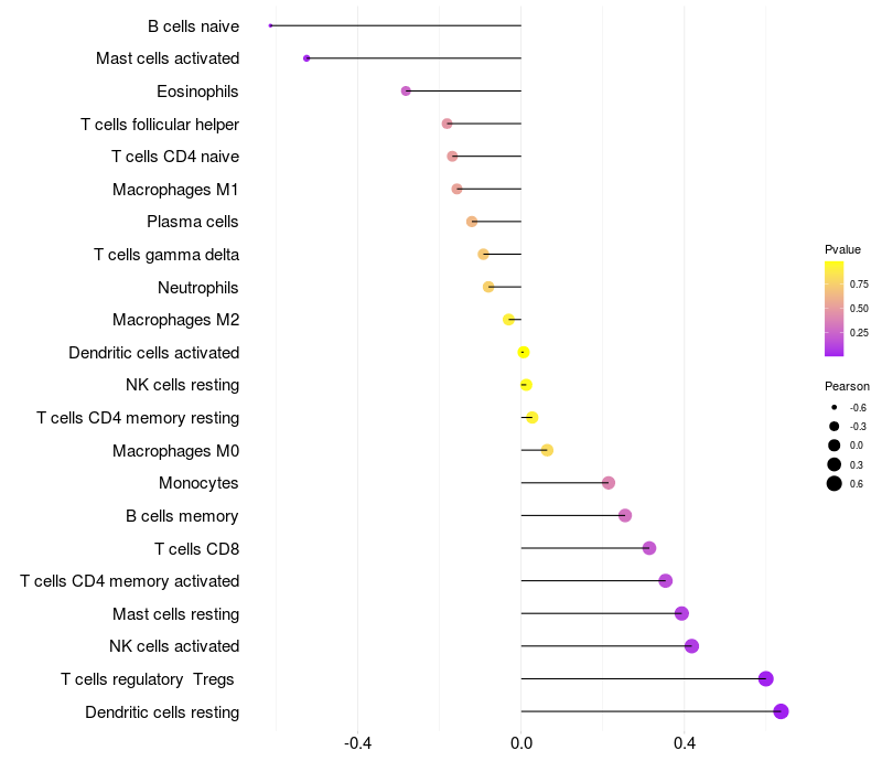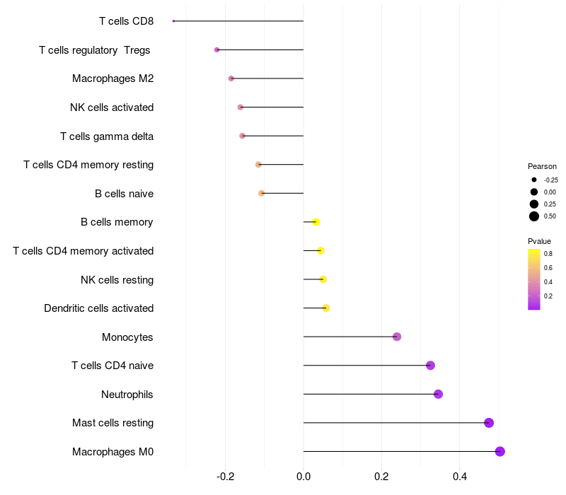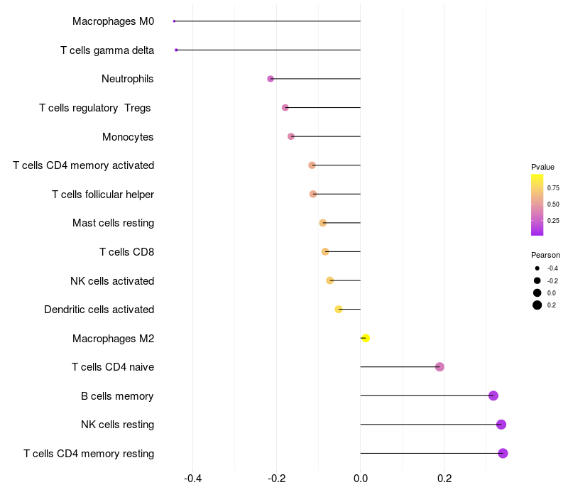 Lollipop of SHARPIN expression and immune infiltrating cell level correlation result in HTLV1+ samples