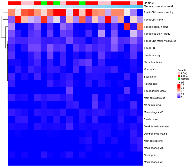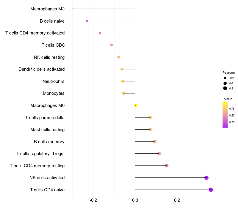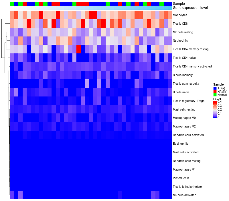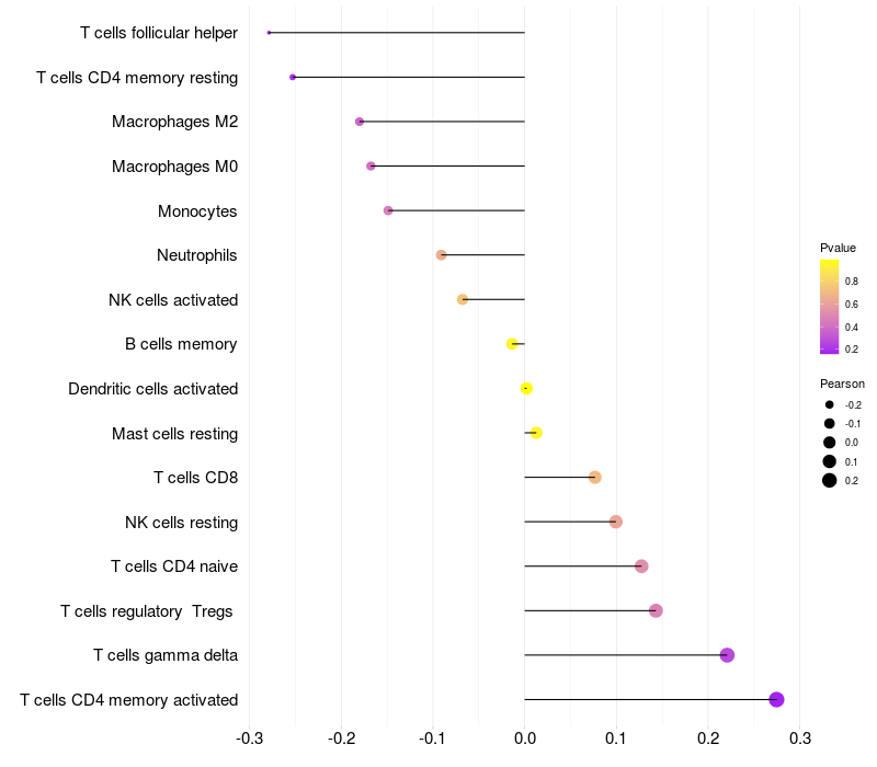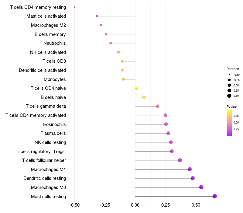 Relationship between gene expression and immune infiltrating cell level