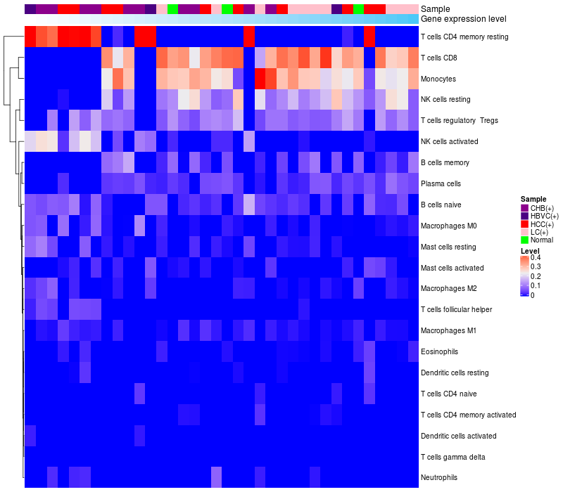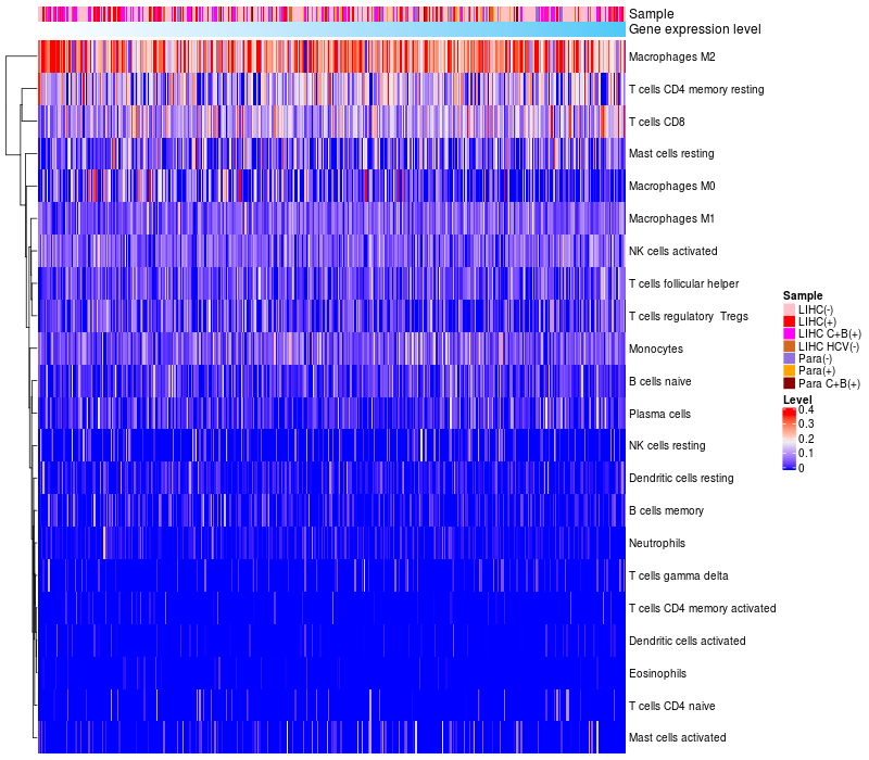 Liver hepatocellular carcinoma HCV (HBV+)(86), Liver hepatocellular carcinoma HCV (HBV-)(19), Liver hepatocellular carcinoma (HBV+)(209), Liver hepatocellular carcinoma (HBV+)(60), Paracancerous HCV (HBV+)(4), Paracancerous (HBV-)(28), Paracancerous (HBV+)(18) |
