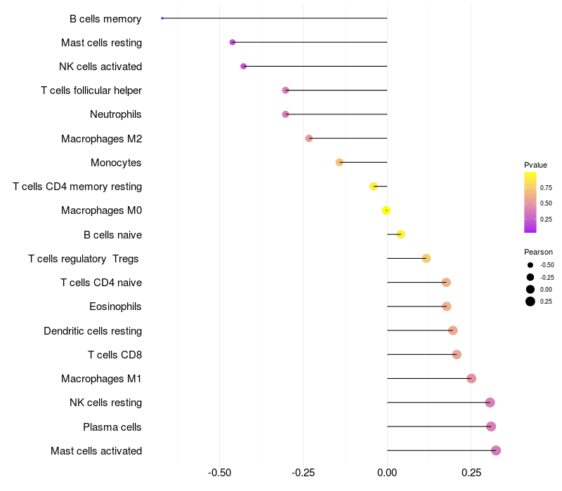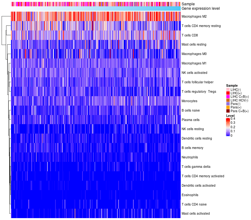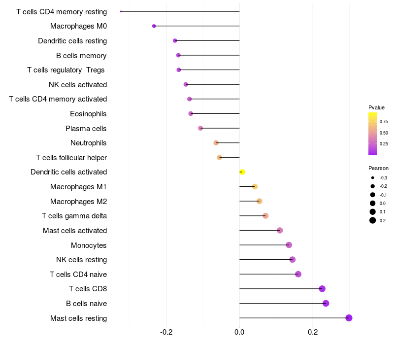 Relationship between gene expression and immune infiltrating cell level