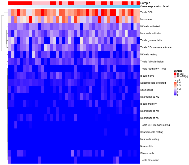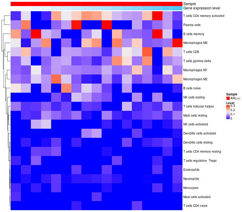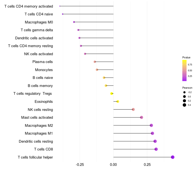 Relationship between gene expression and immune infiltrating cell level