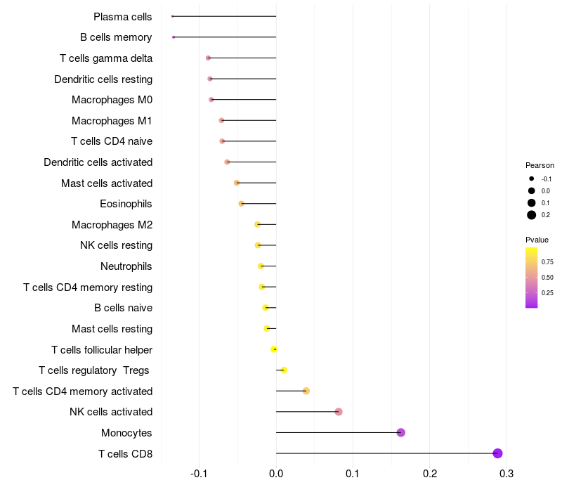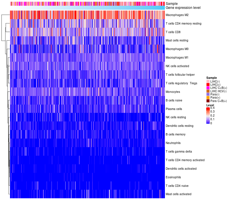 Relationship between gene expression and immune infiltrating cell level