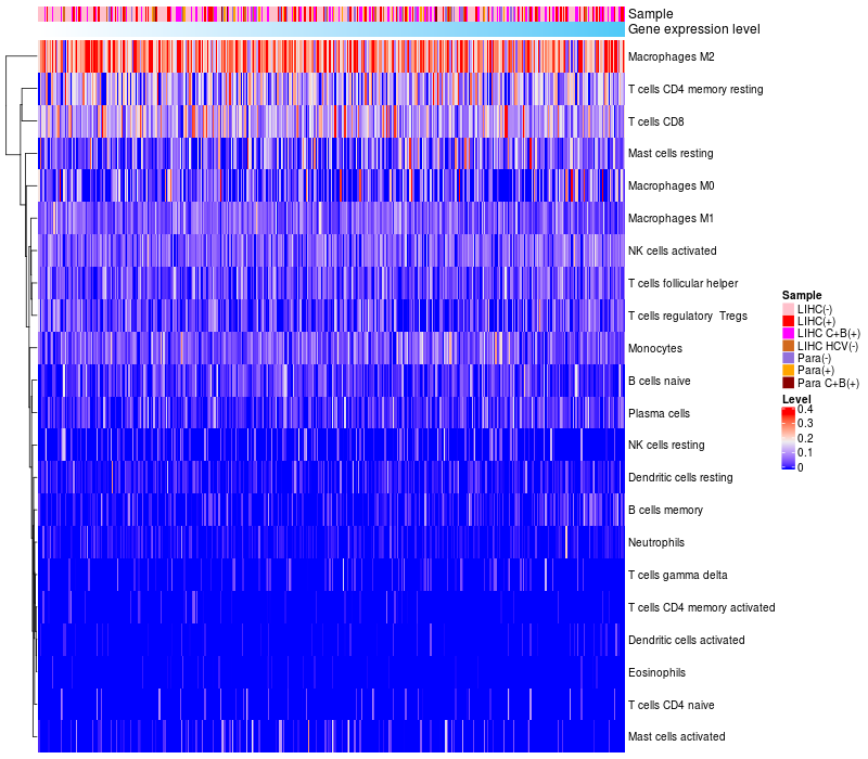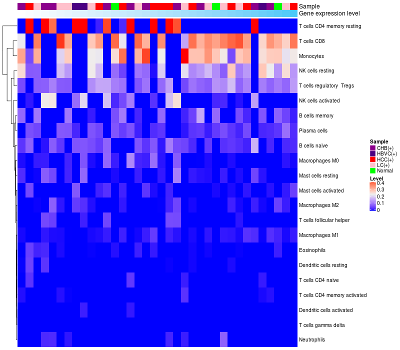 Relationship between gene expression and immune infiltrating cell level