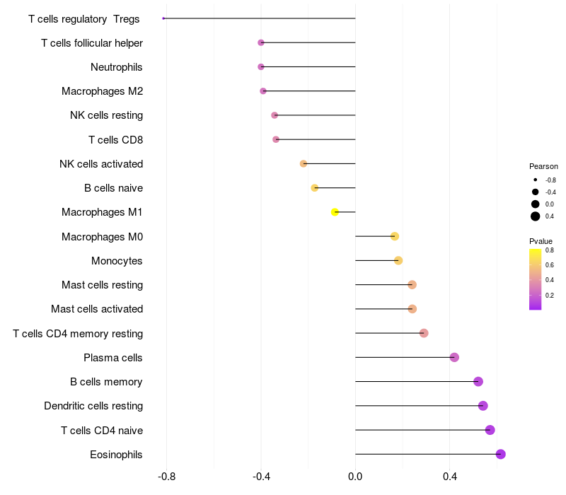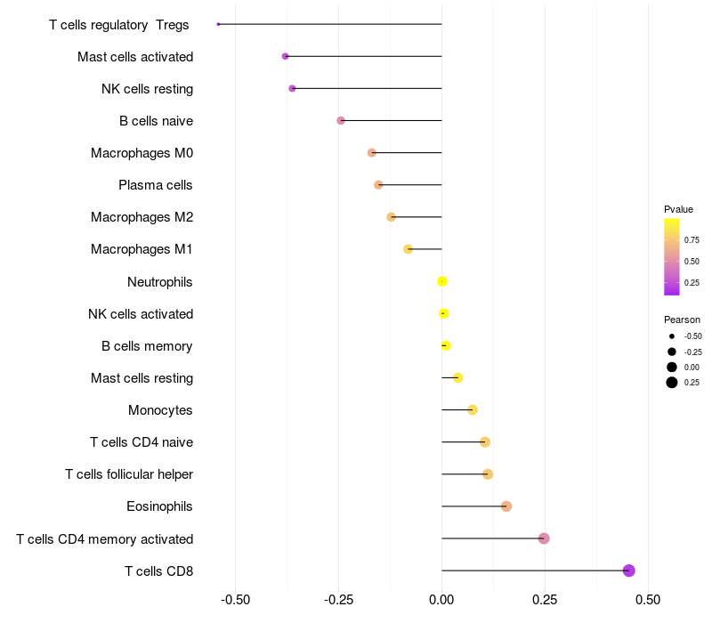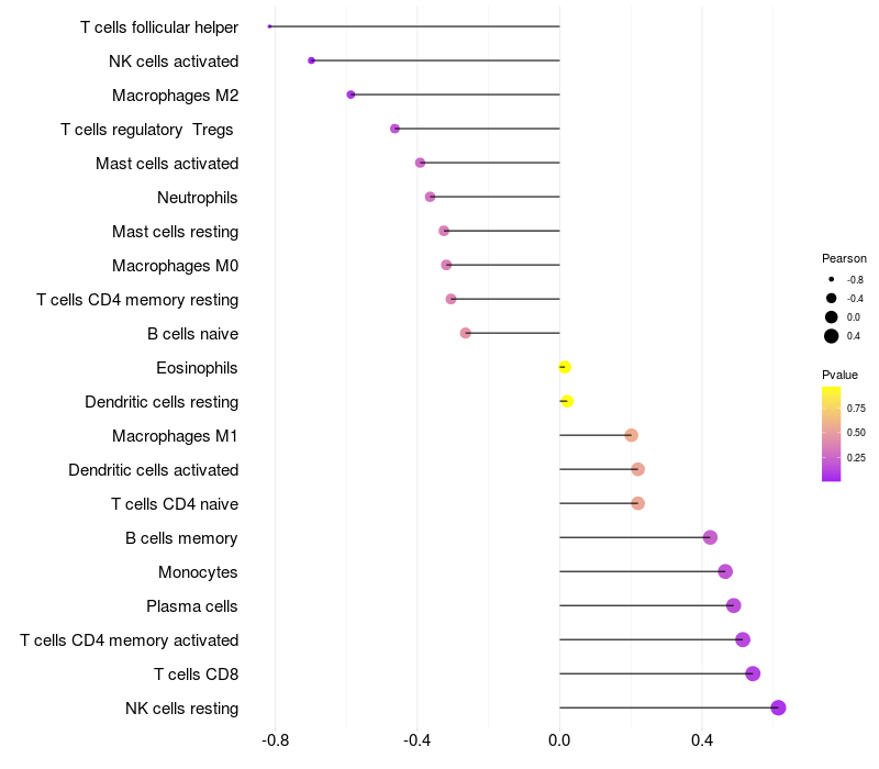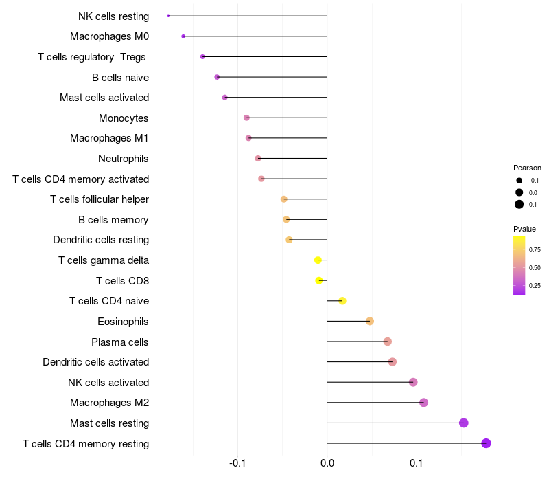 Lollipop of SIPA1L1 expression and immune infiltrating cell level correlation result in HBV+ Liver cirrhosis samples