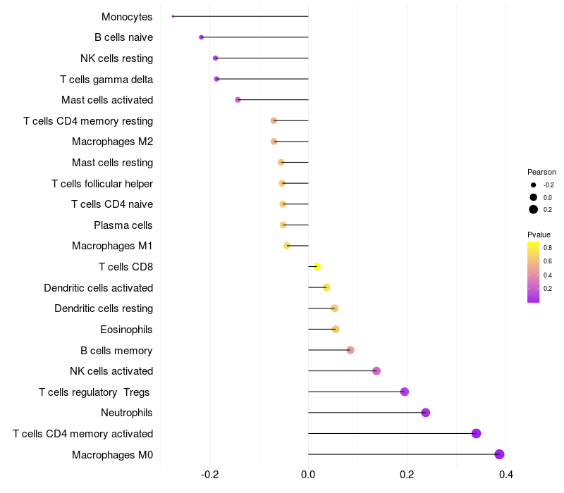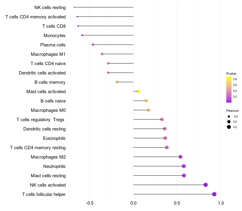 Lollipop of SIPA1L2 expression and immune infiltrating cell level correlation result in HBV+ Liver cirrhosis samples