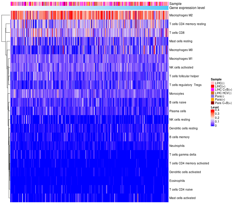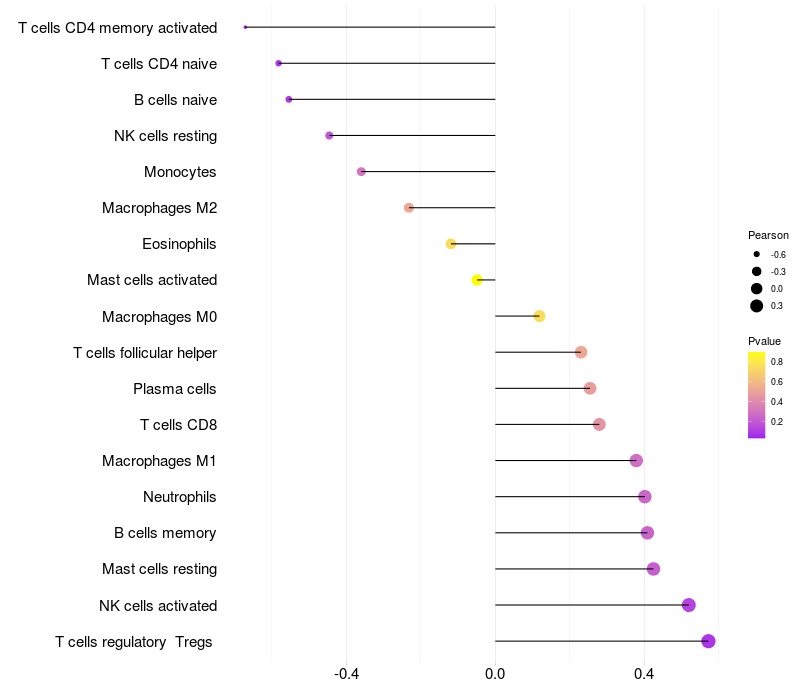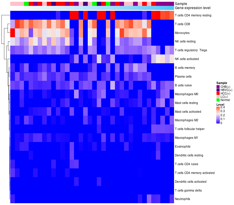 Relationship between gene expression and immune infiltrating cell level