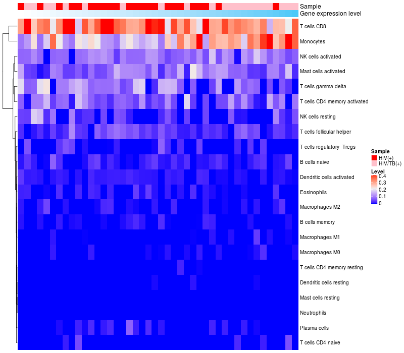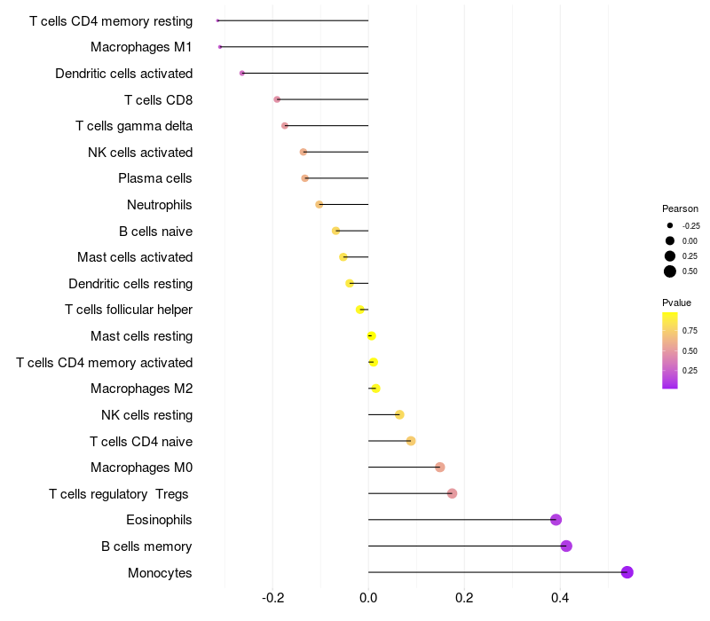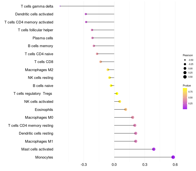 Relationship between gene expression and immune infiltrating cell level