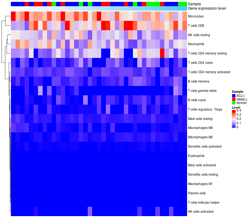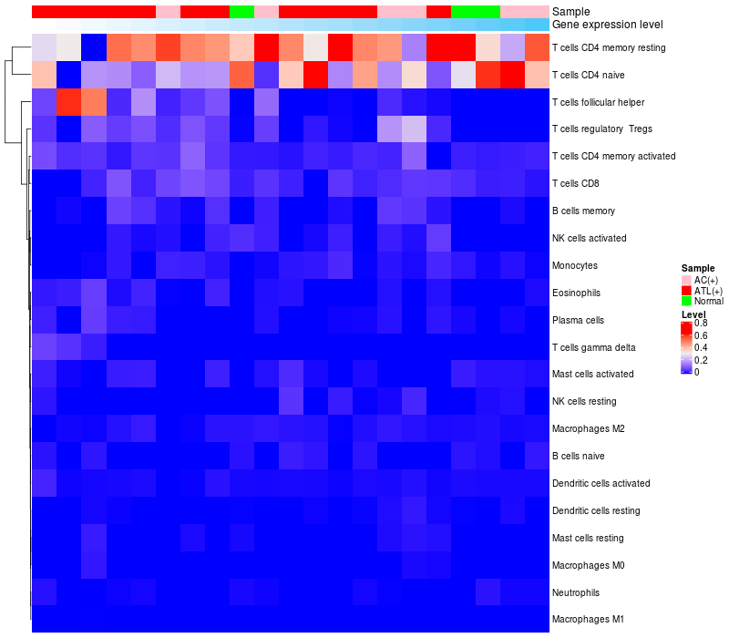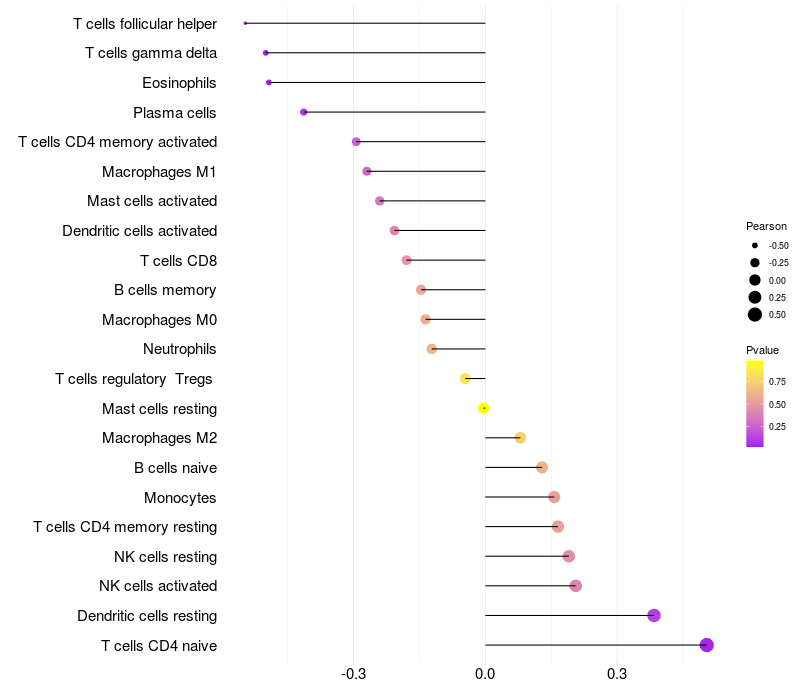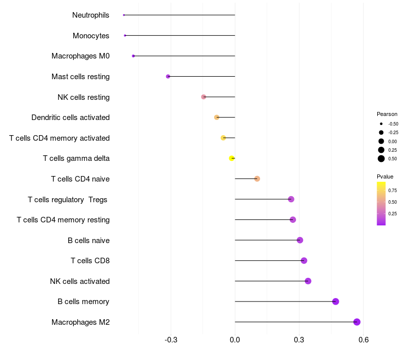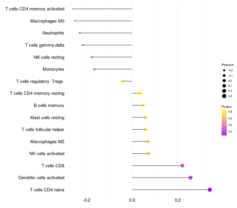 Lollipop of SIRT4 expression and immune infiltrating cell level correlation result in HTLV1+ samples