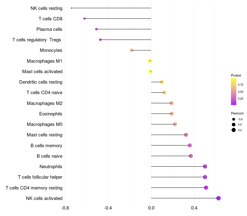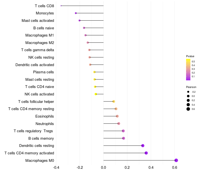 Relationship between gene expression and immune infiltrating cell level