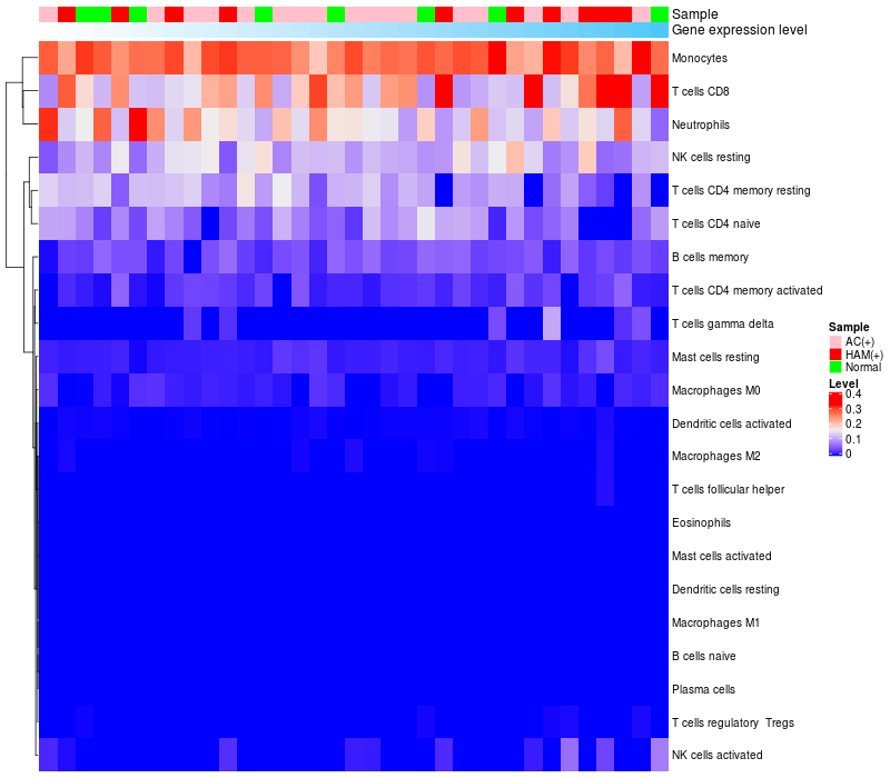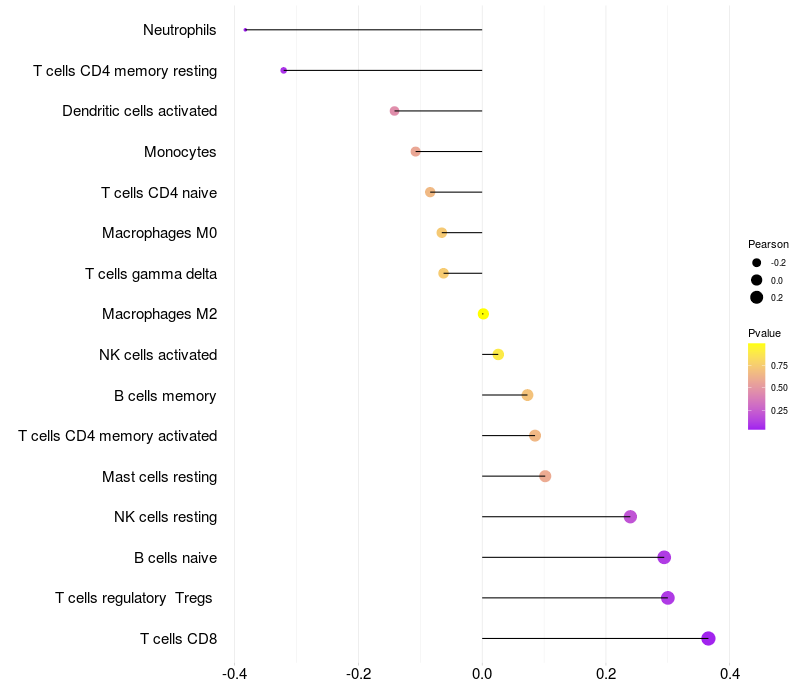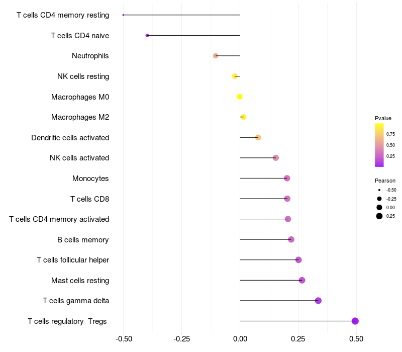 Relationship between gene expression and immune infiltrating cell level