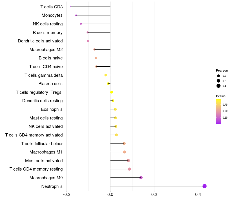 Lollipop of SLC11A2 expression and immune infiltrating cell level correlation result in HBV+ samples