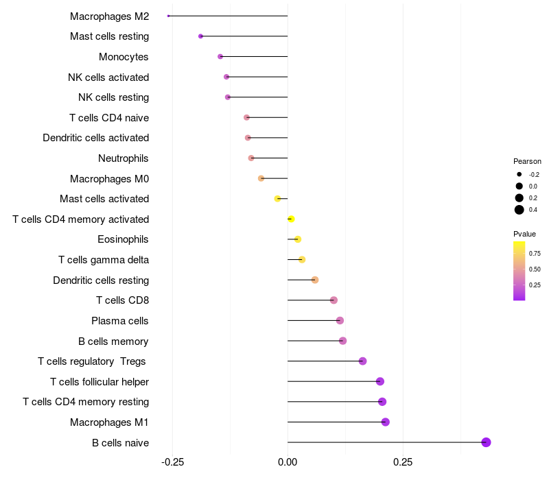 Lollipop of SLC12A3 expression and immune infiltrating cell level correlation result in HBV+ samples