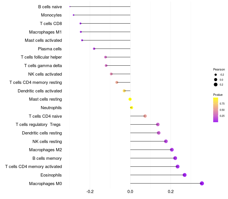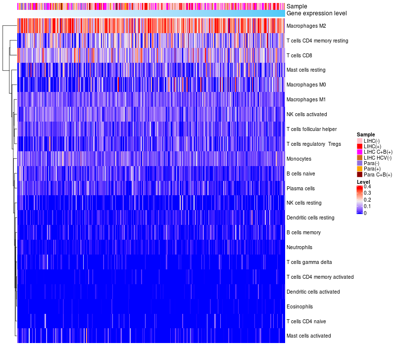 Relationship between gene expression and immune infiltrating cell level