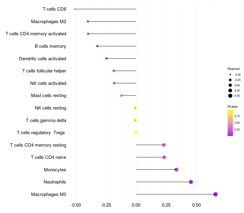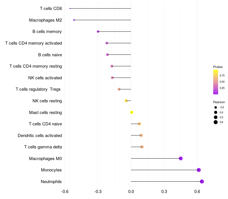 Lollipop of SLC12A9 expression and immune infiltrating cell level correlation result in HTLV1+ samples