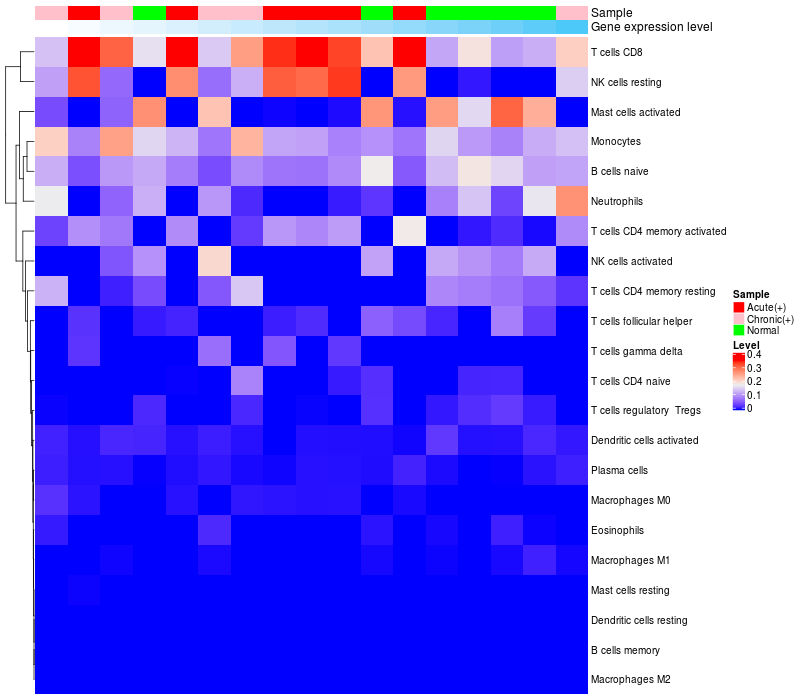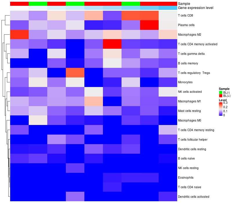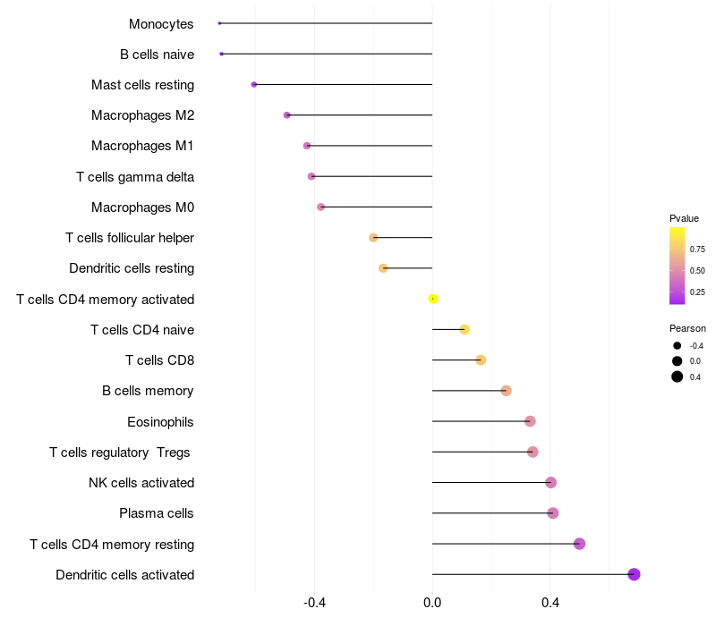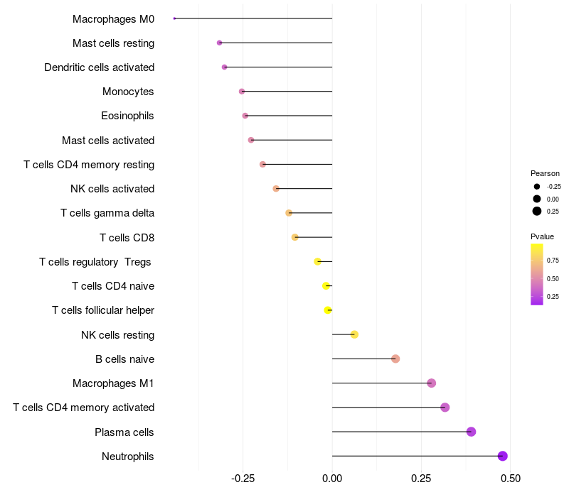 Relationship between gene expression and immune infiltrating cell level