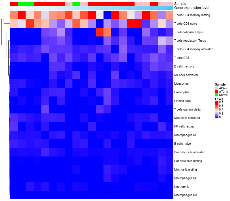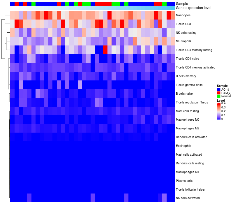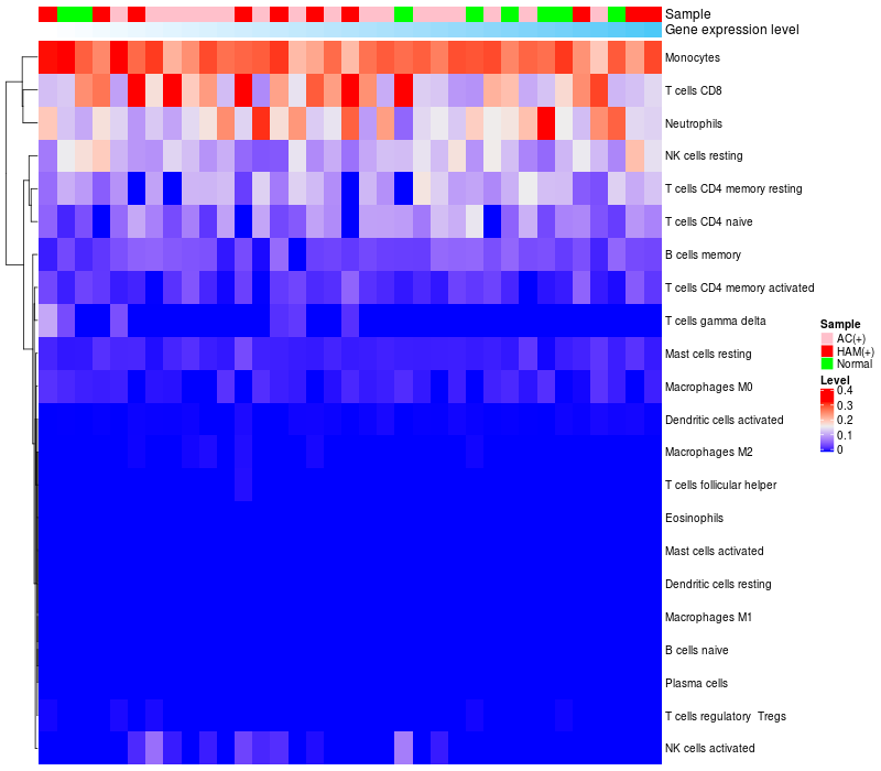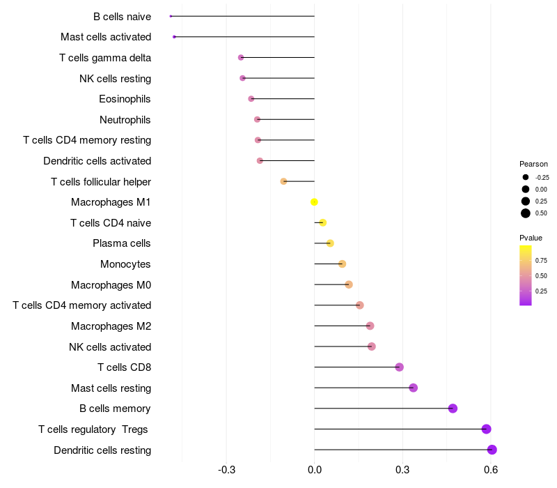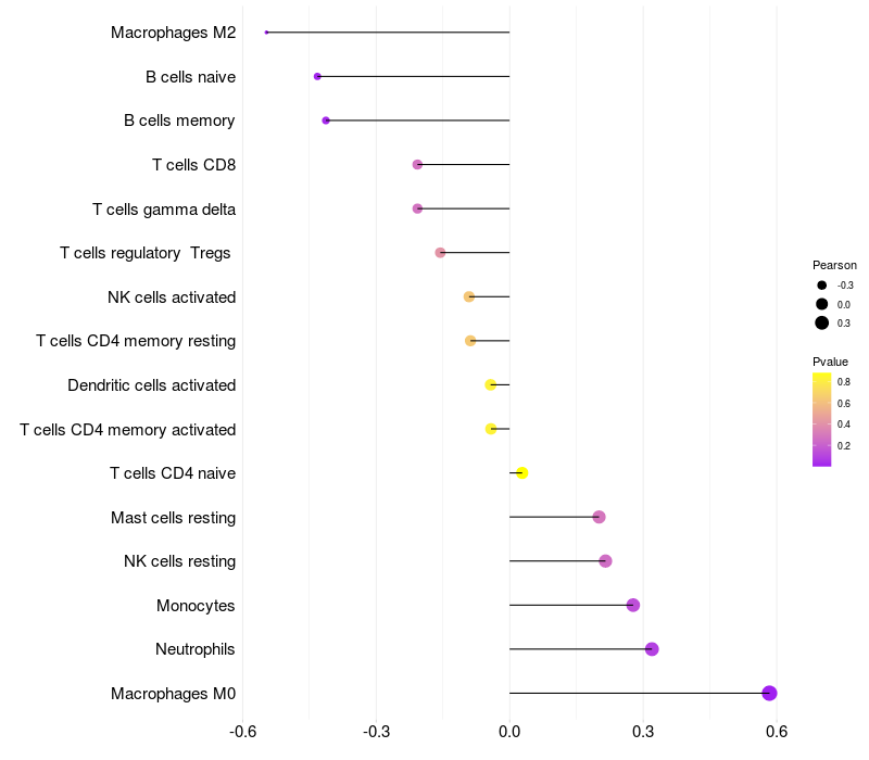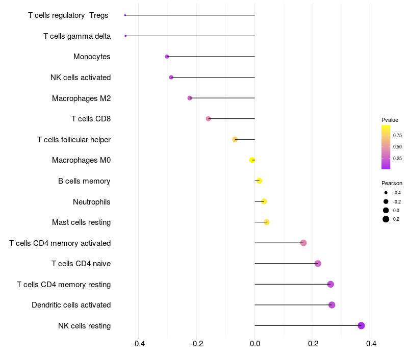 Lollipop of SLC16A12 expression and immune infiltrating cell level correlation result in HTLV1+ samples
