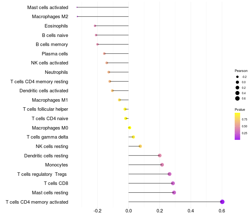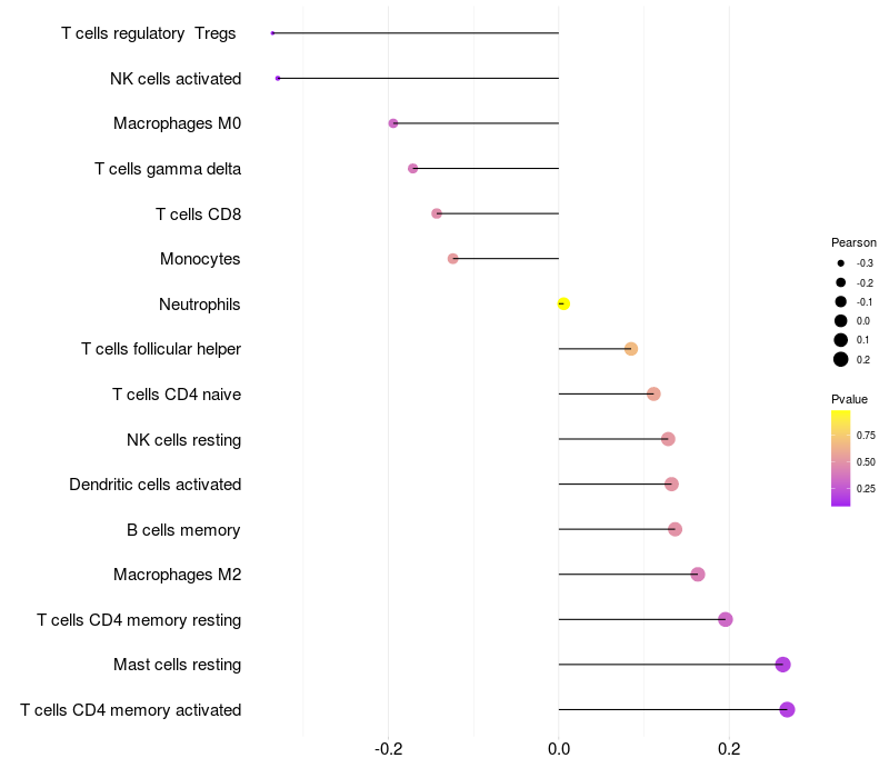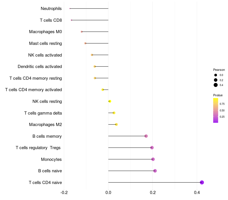 Lollipop of SLC16A2 expression and immune infiltrating cell level correlation result in HTLV1+ samples