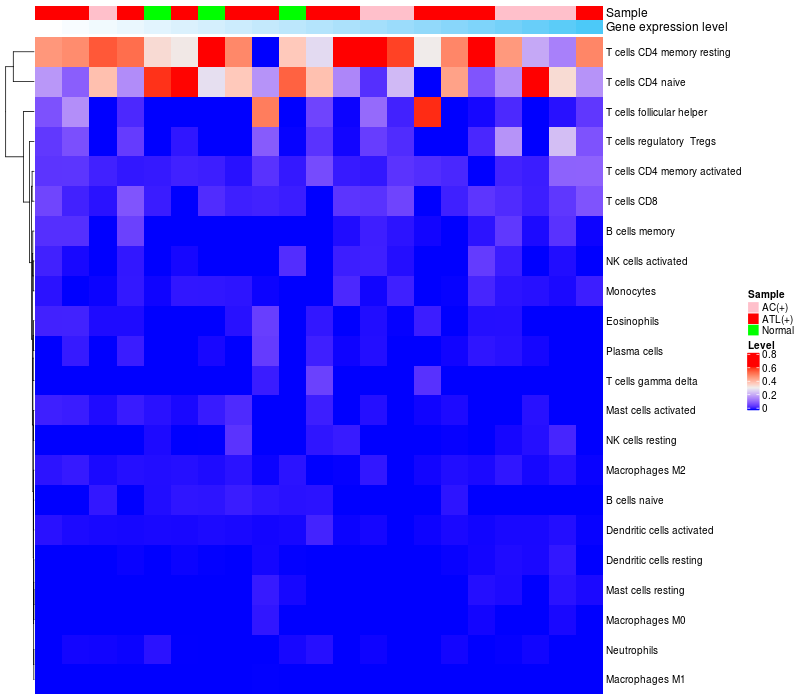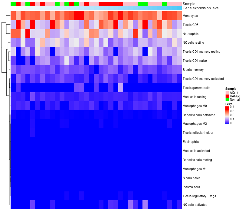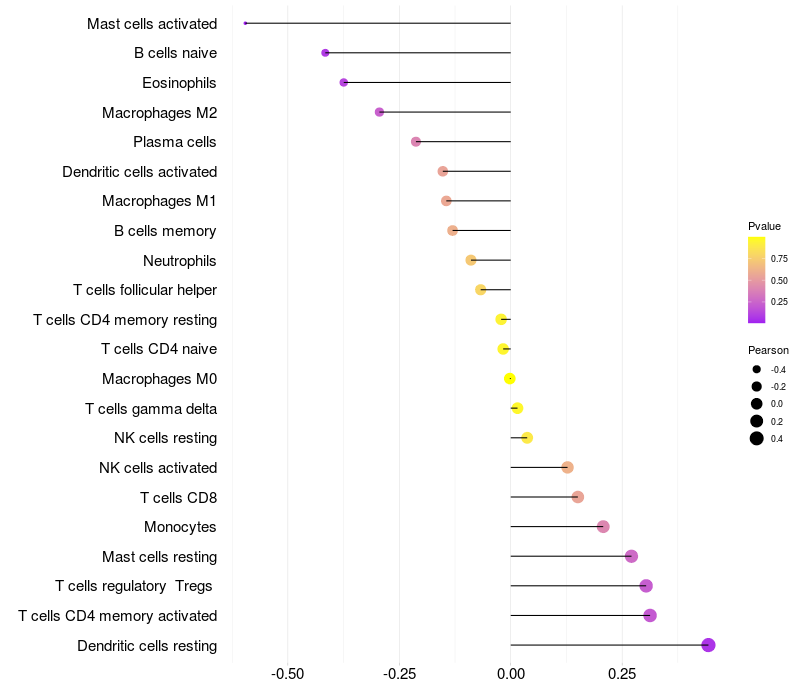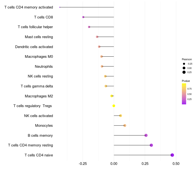 Relationship between gene expression and immune infiltrating cell level