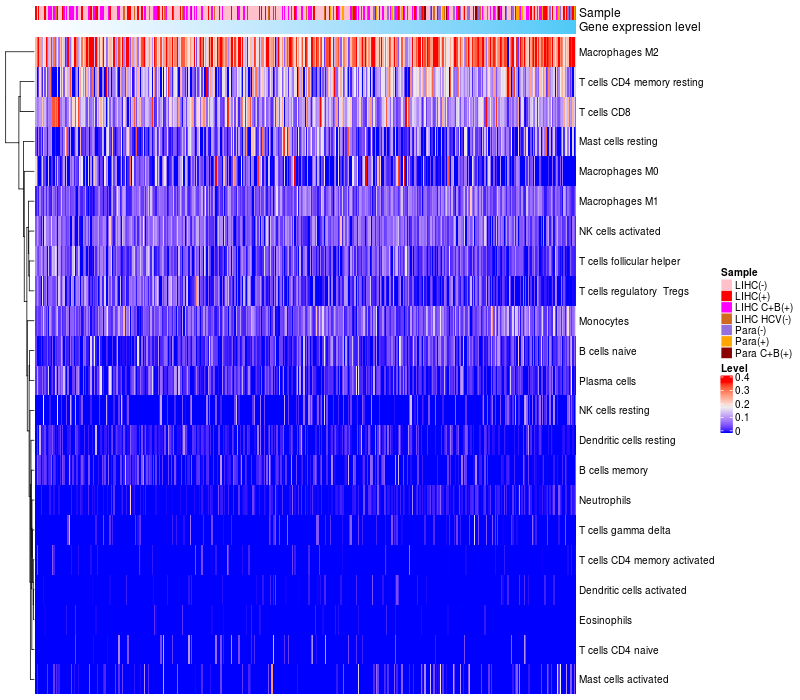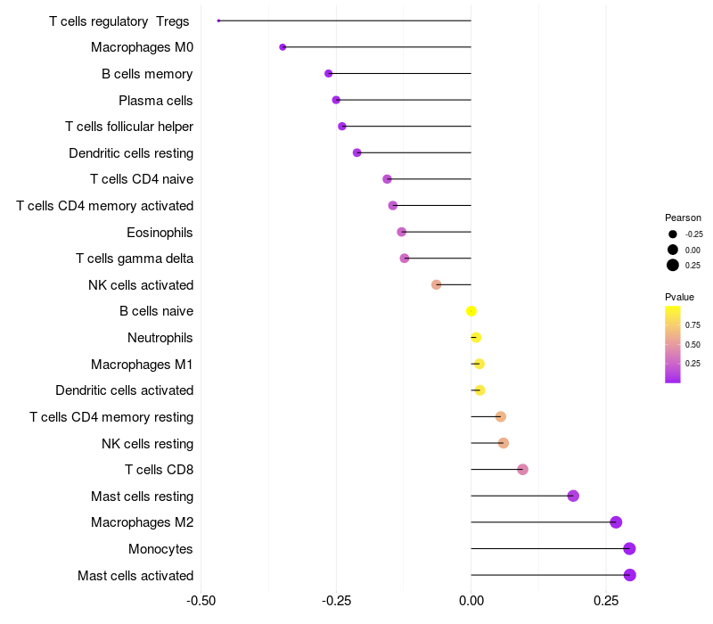 Relationship between gene expression and immune infiltrating cell level