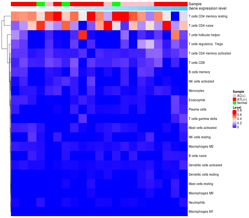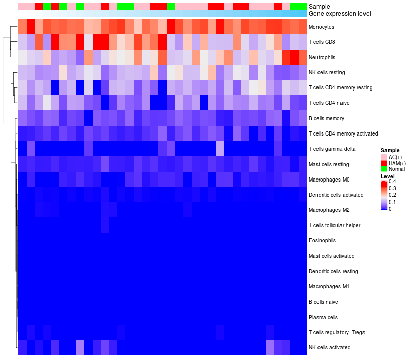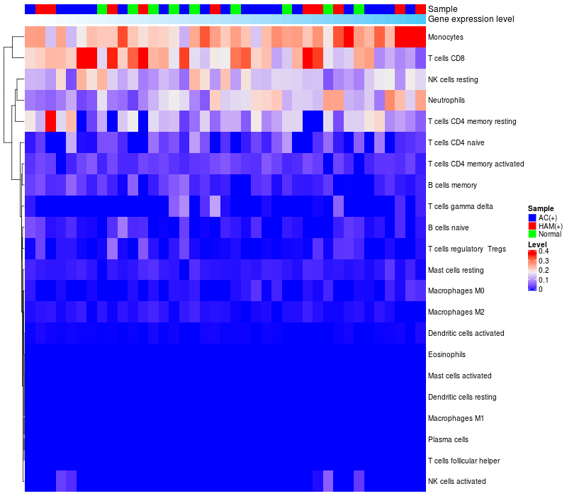 Lollipop of SLC22A15 expression and immune infiltrating cell level correlation result in HTLV1+ samples
