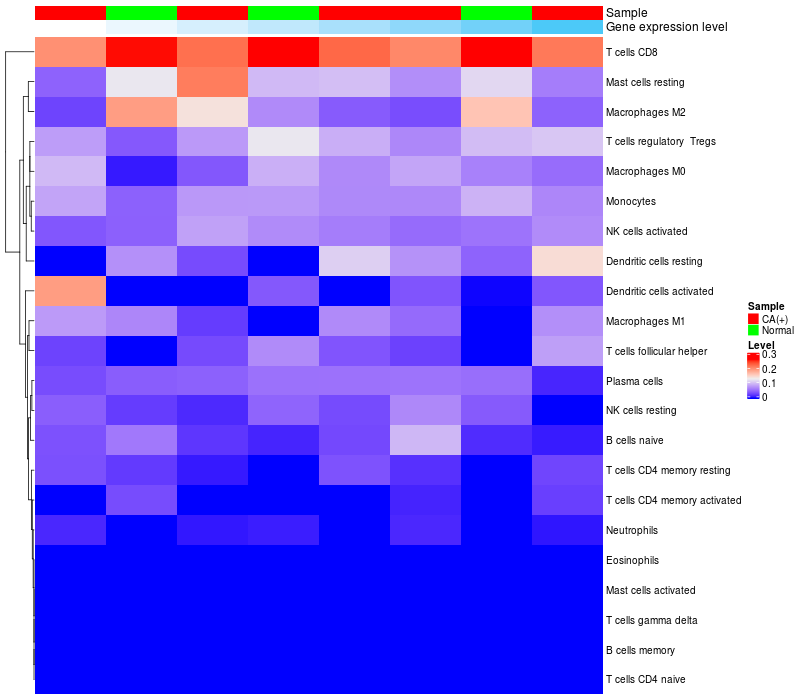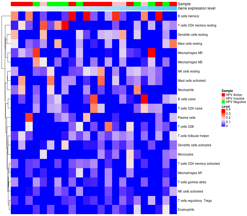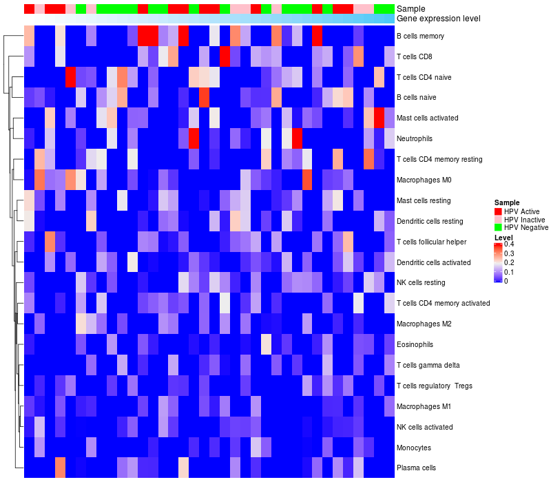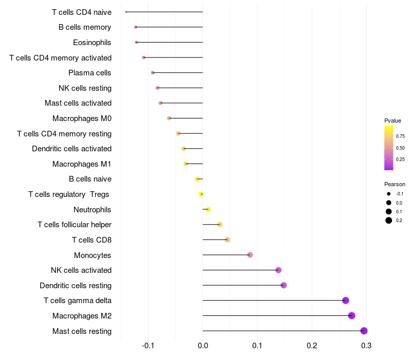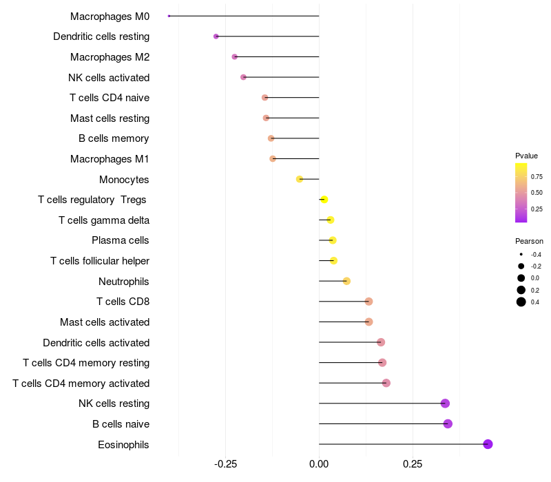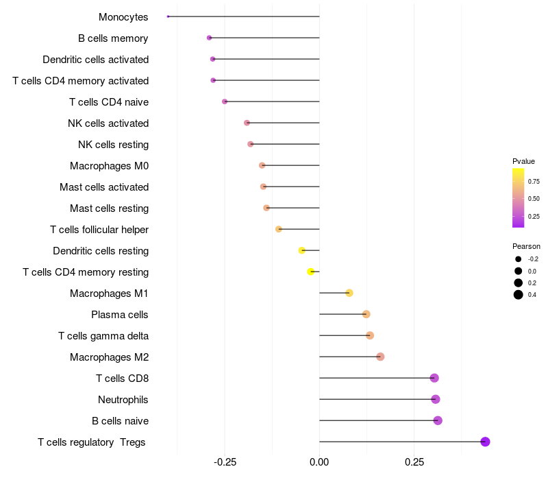Lollipop of SLC22A7 expression and immune infiltrating cell level correlation result in HPV+ samples