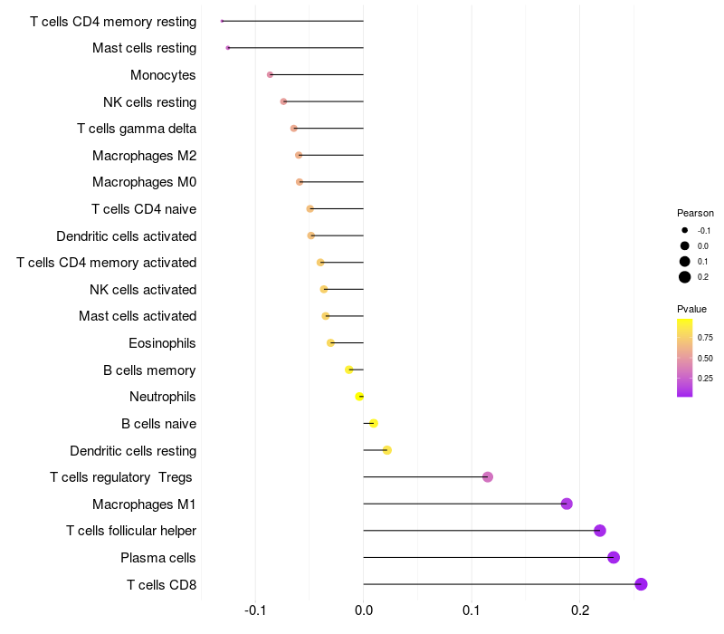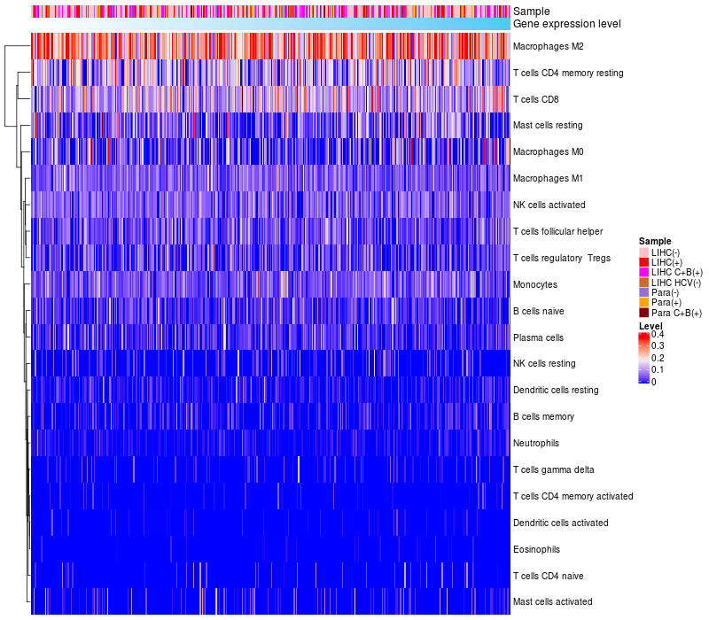 Relationship between gene expression and immune infiltrating cell level