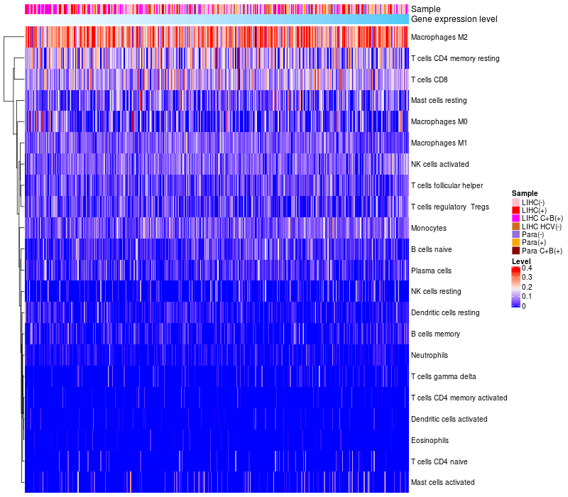 Relationship between gene expression and immune infiltrating cell level