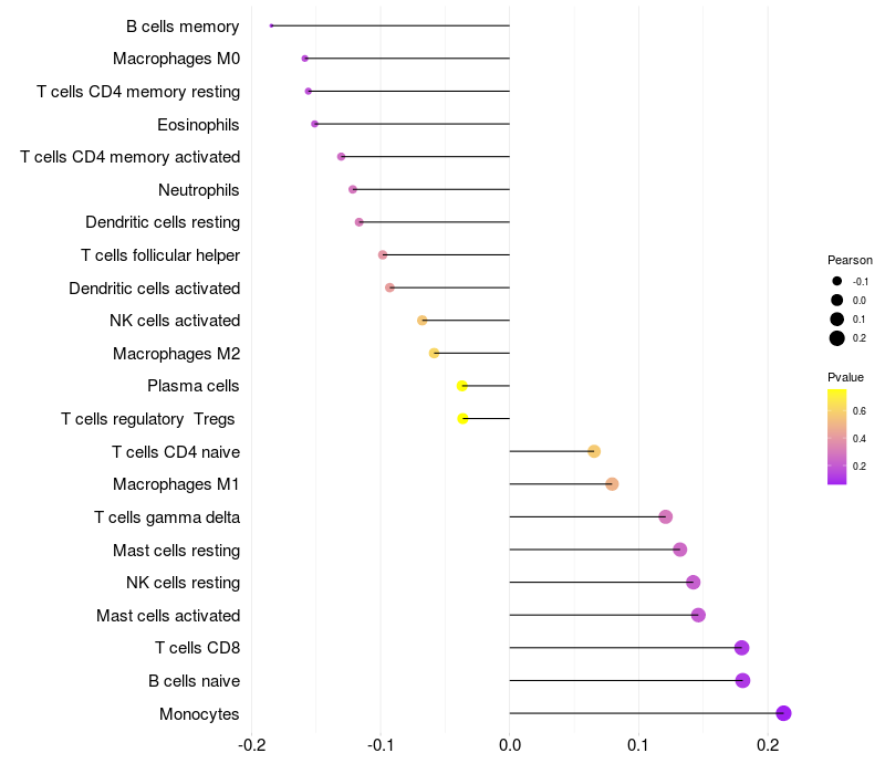 Lollipop of SLC25A26 expression and immune infiltrating cell level correlation result in HBV+ samples