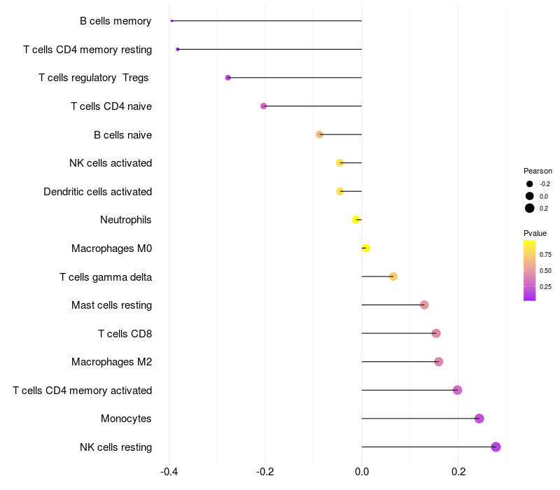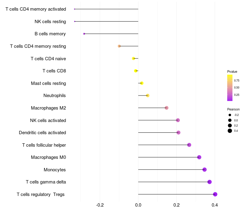 Lollipop of SLC25A30 expression and immune infiltrating cell level correlation result in HTLV1+ samples