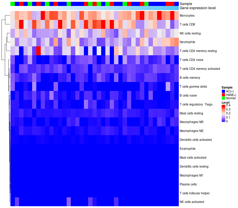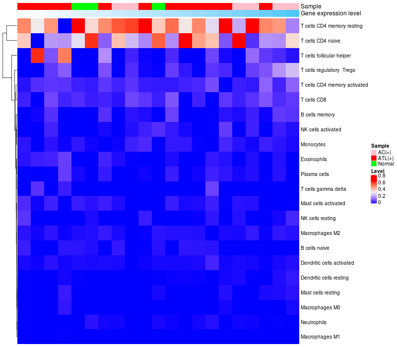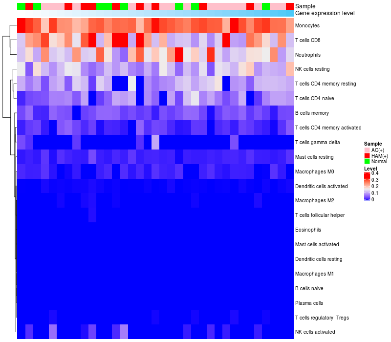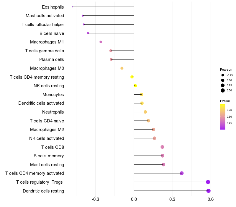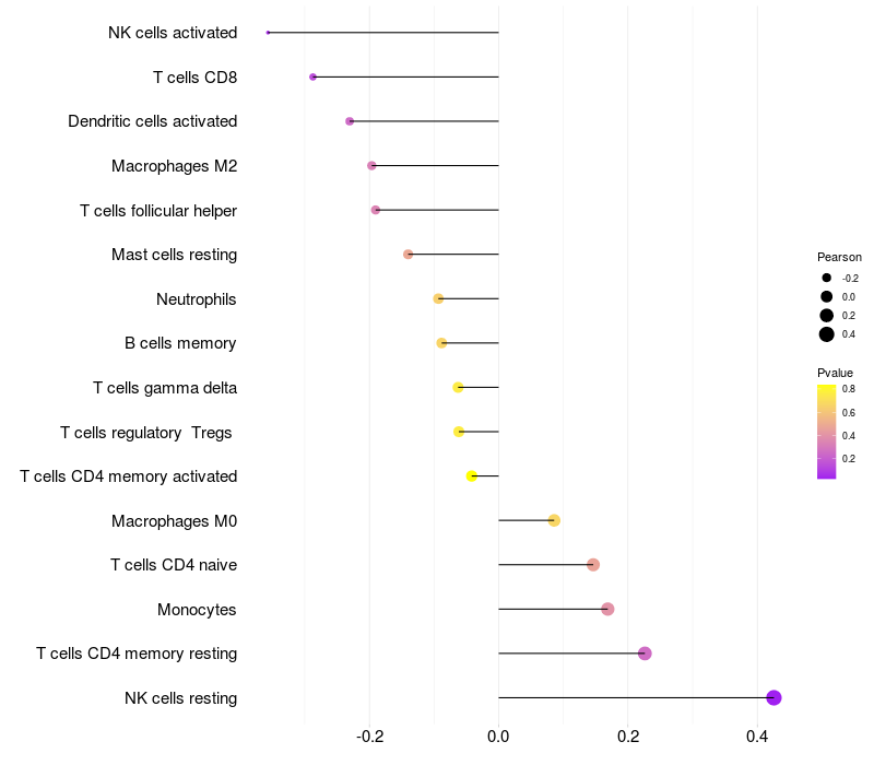 Lollipop of SLC25A37 expression and immune infiltrating cell level correlation result in HTLV1+ samples