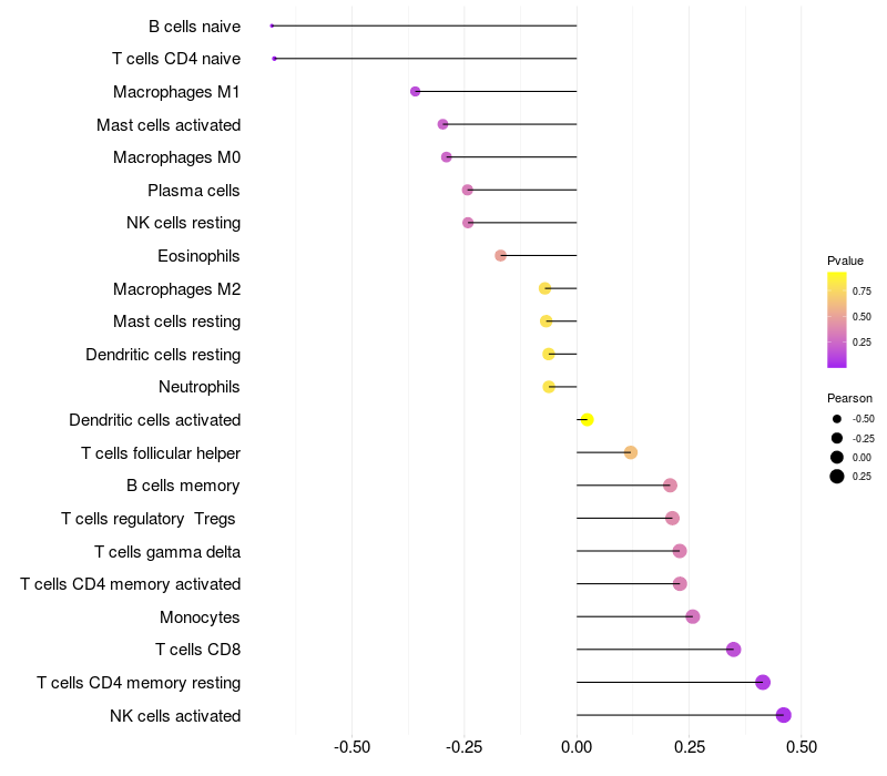 Lollipop of SLC25A43 expression and immune infiltrating cell level correlation result in HTLV1+ samples