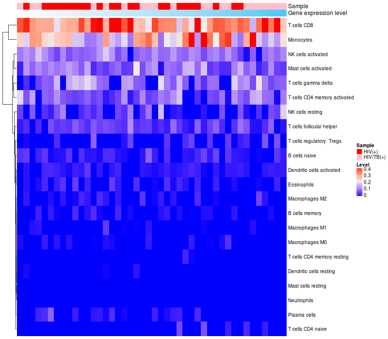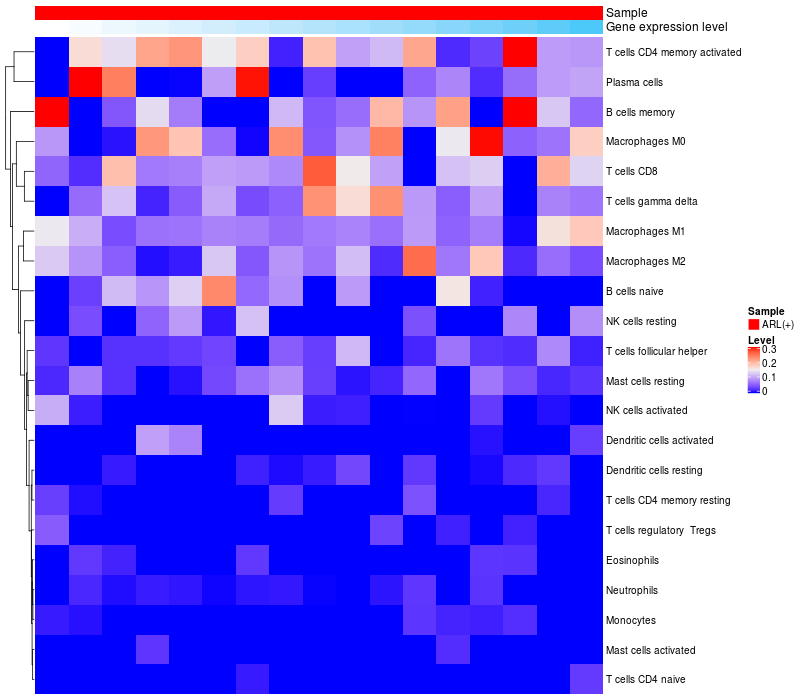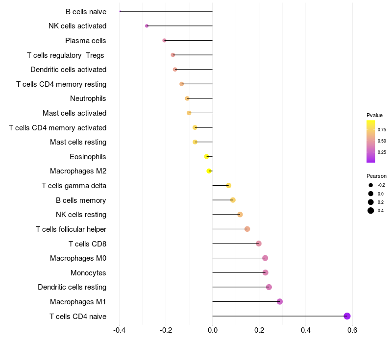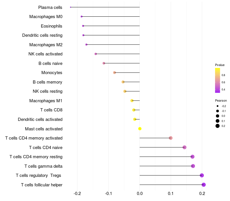 Relationship between gene expression and immune infiltrating cell level