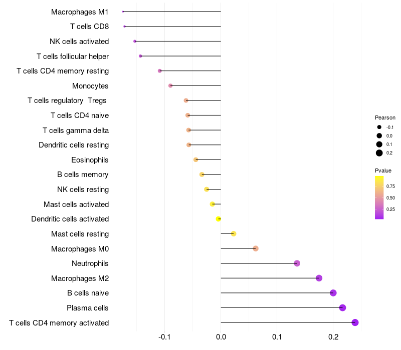 Lollipop of SLC26A3 expression and immune infiltrating cell level correlation result in HBV+ samples