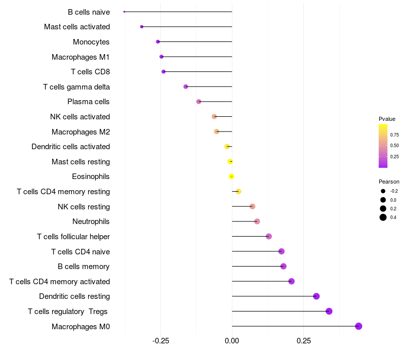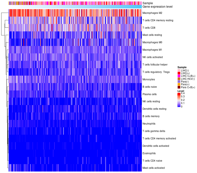 Relationship between gene expression and immune infiltrating cell level