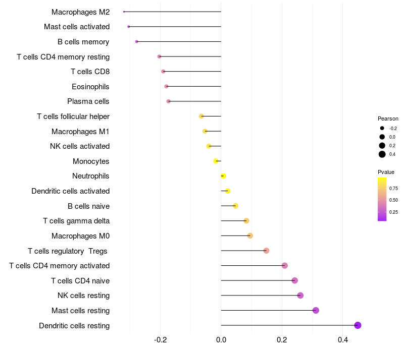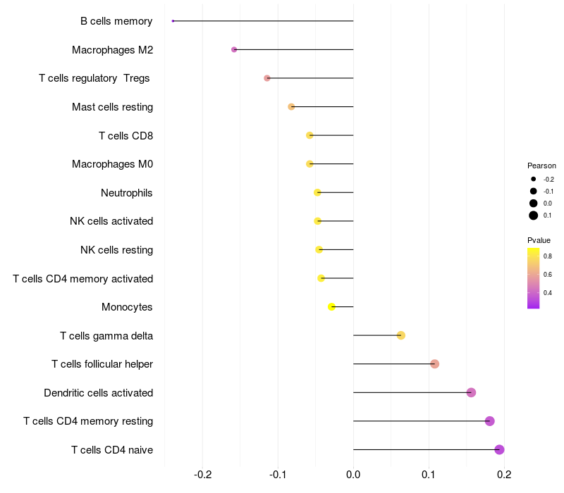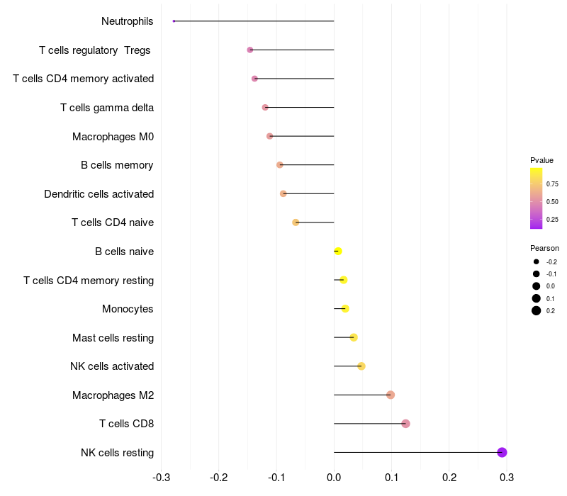 Lollipop of SLC26A7 expression and immune infiltrating cell level correlation result in HTLV1+ samples