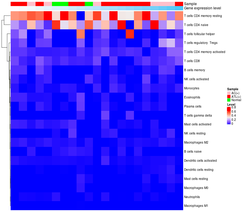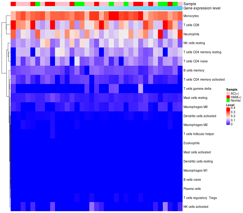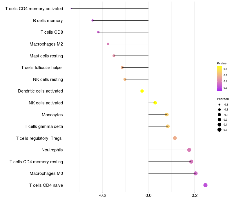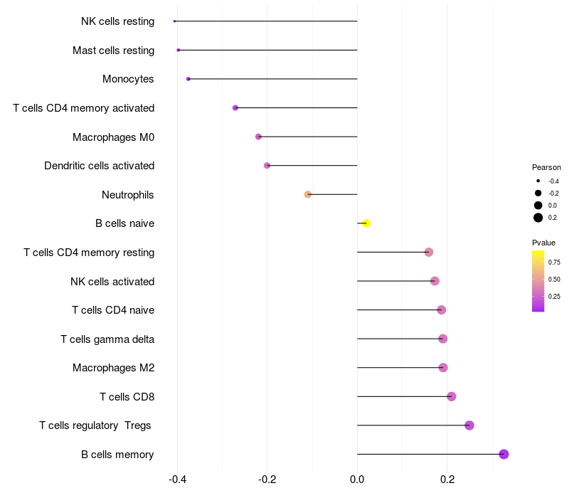Relationship between gene expression and immune infiltrating cell level