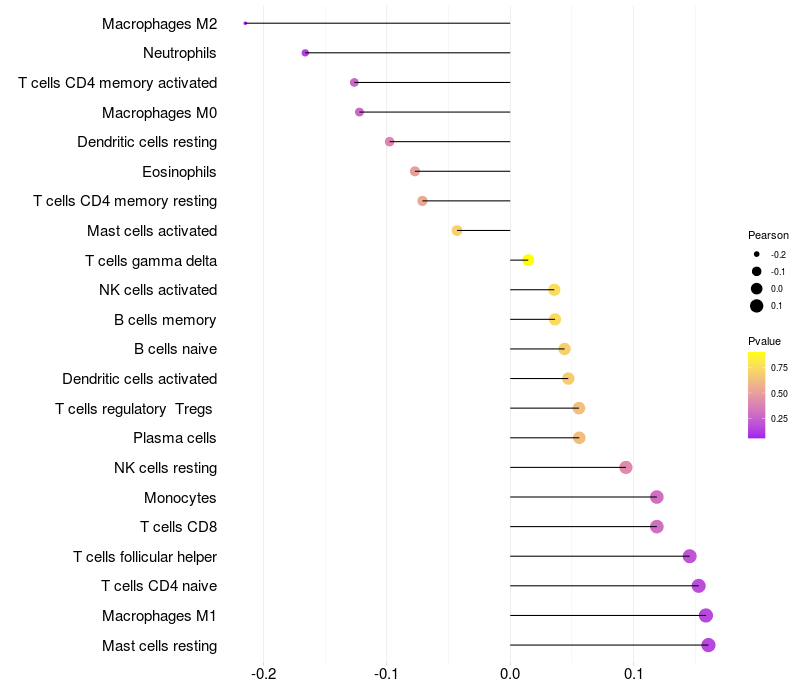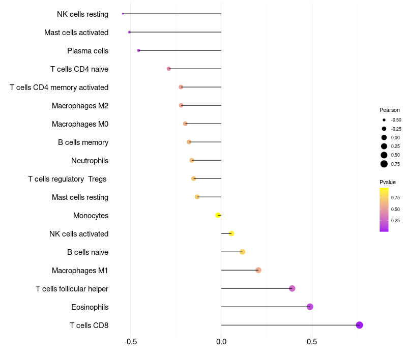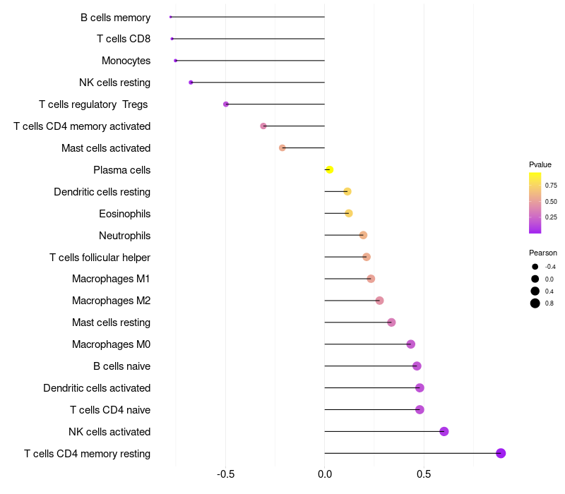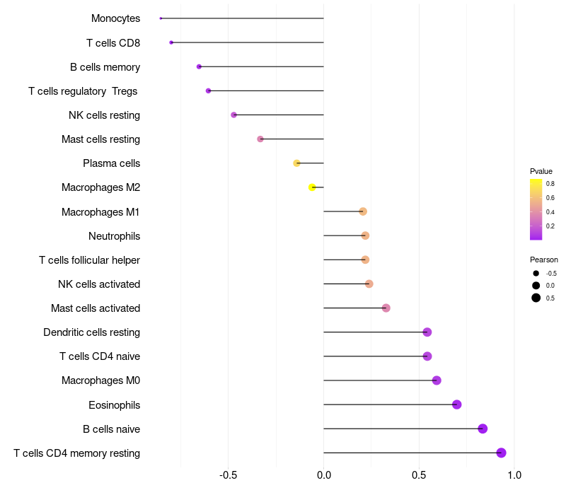 Lollipop of SLC2A4RG expression and immune infiltrating cell level correlation result in HBV+ samples