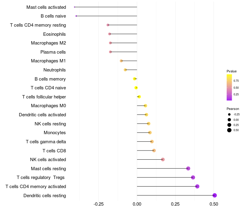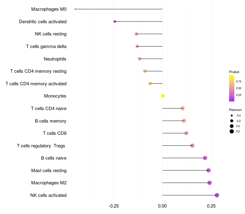 Lollipop of SLC35F4 expression and immune infiltrating cell level correlation result in HTLV1+ samples