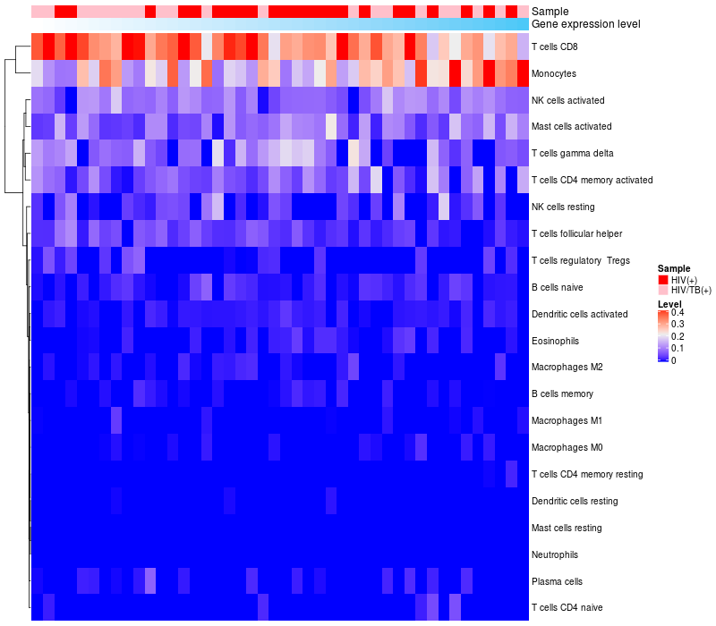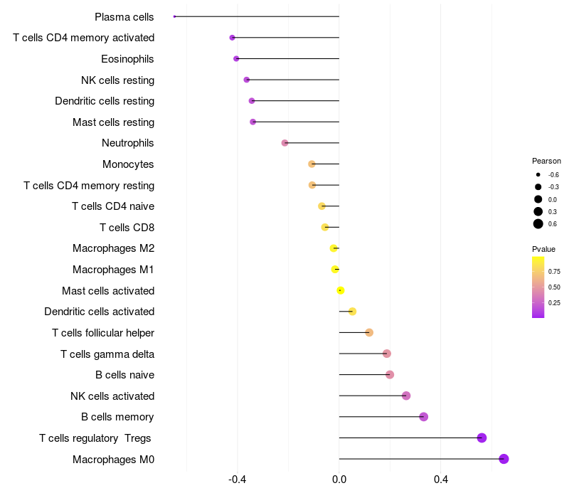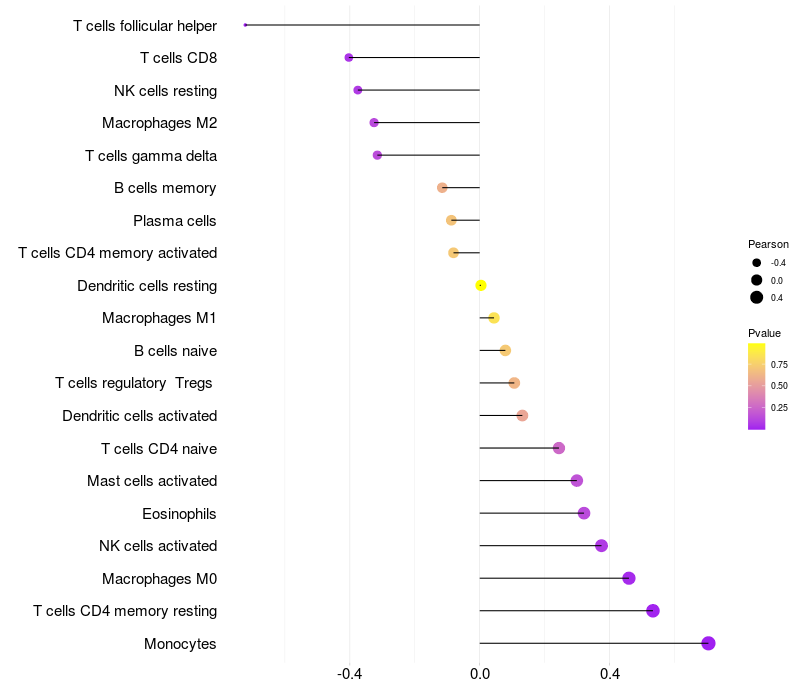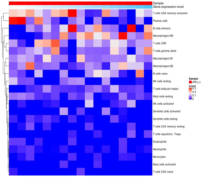 Relationship between gene expression and immune infiltrating cell level