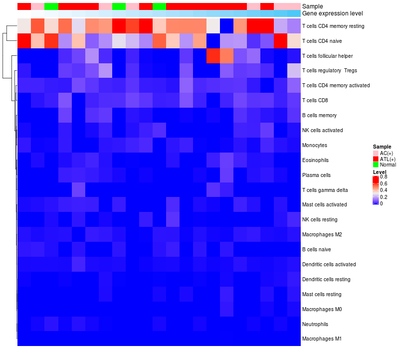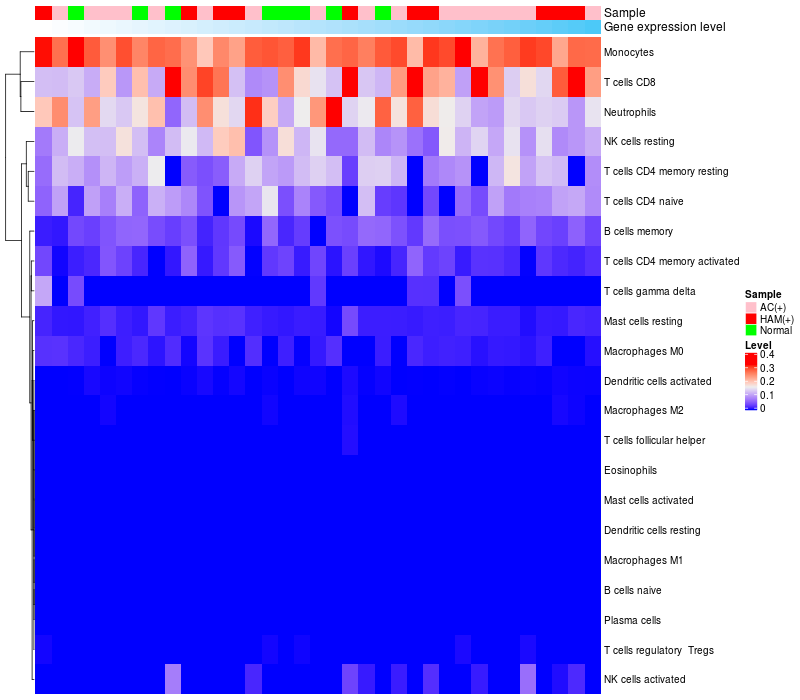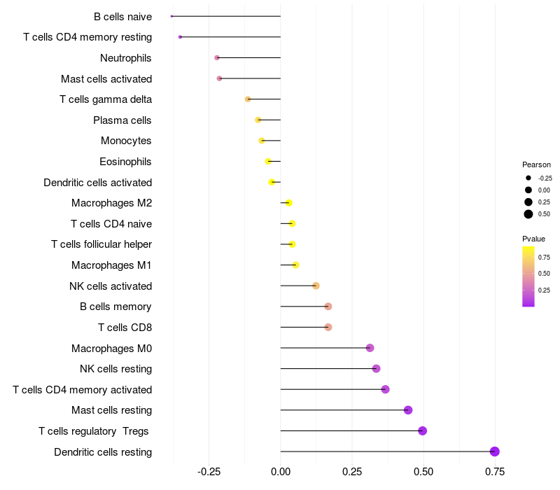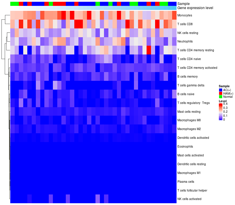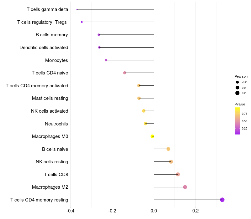 Relationship between gene expression and immune infiltrating cell level