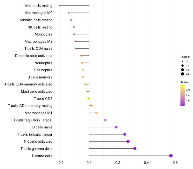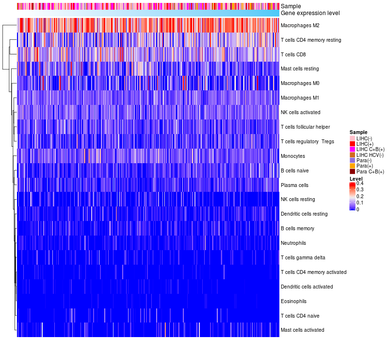 Relationship between gene expression and immune infiltrating cell level