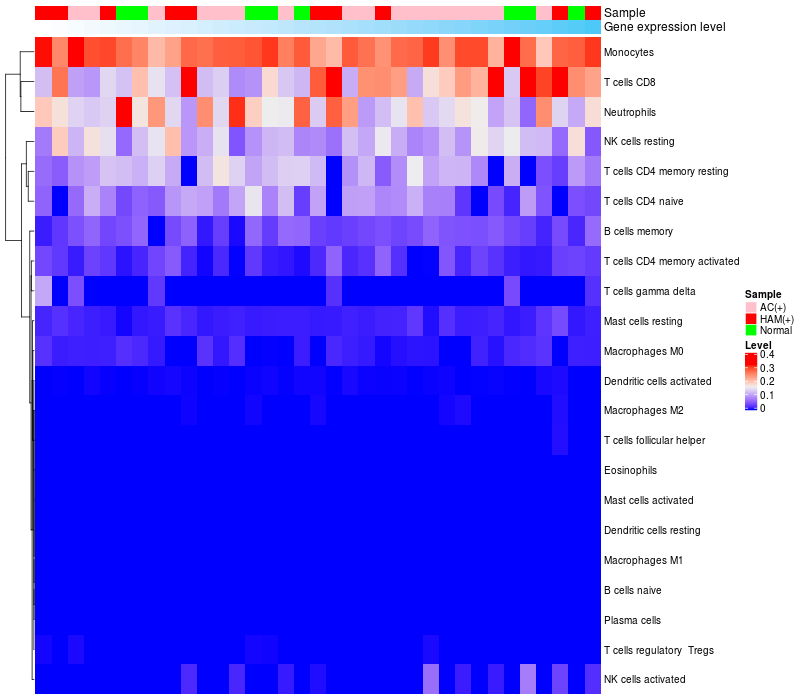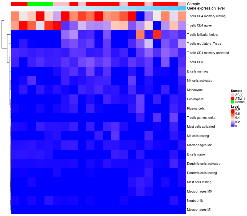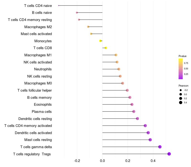 Lollipop of SLC39A6 expression and immune infiltrating cell level correlation result in HTLV1+ samples