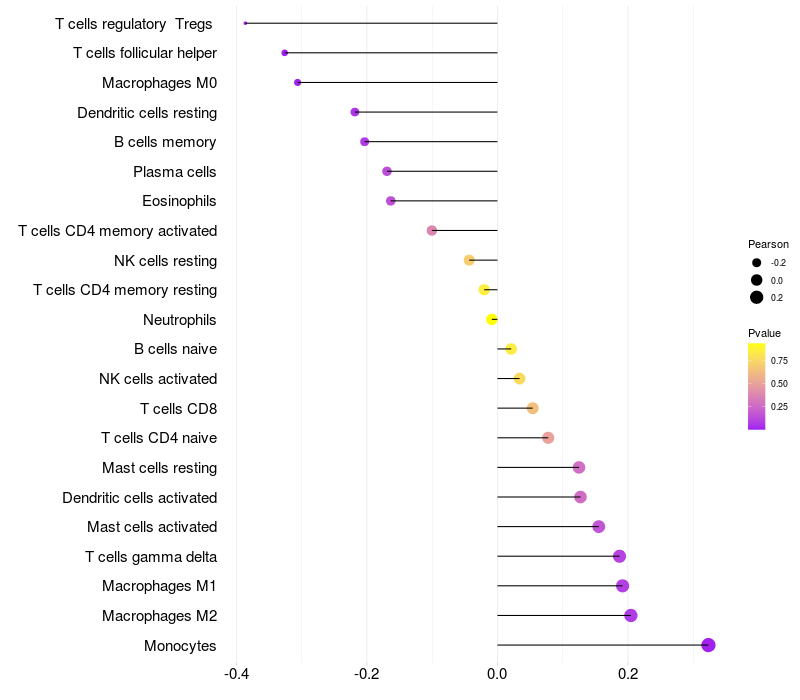 Relationship between gene expression and immune infiltrating cell level