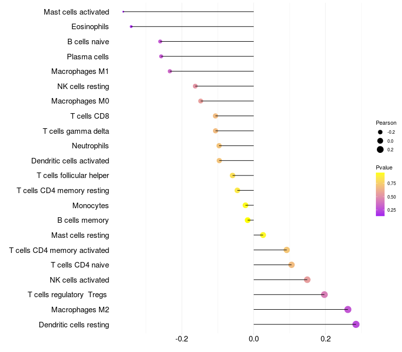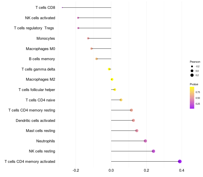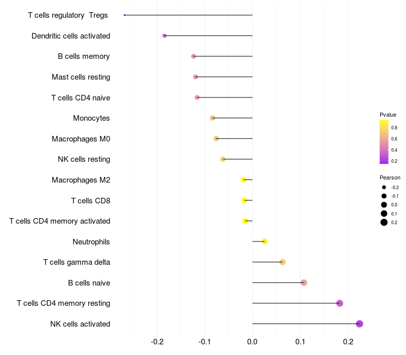 Lollipop of SLC5A1 expression and immune infiltrating cell level correlation result in HTLV1+ samples