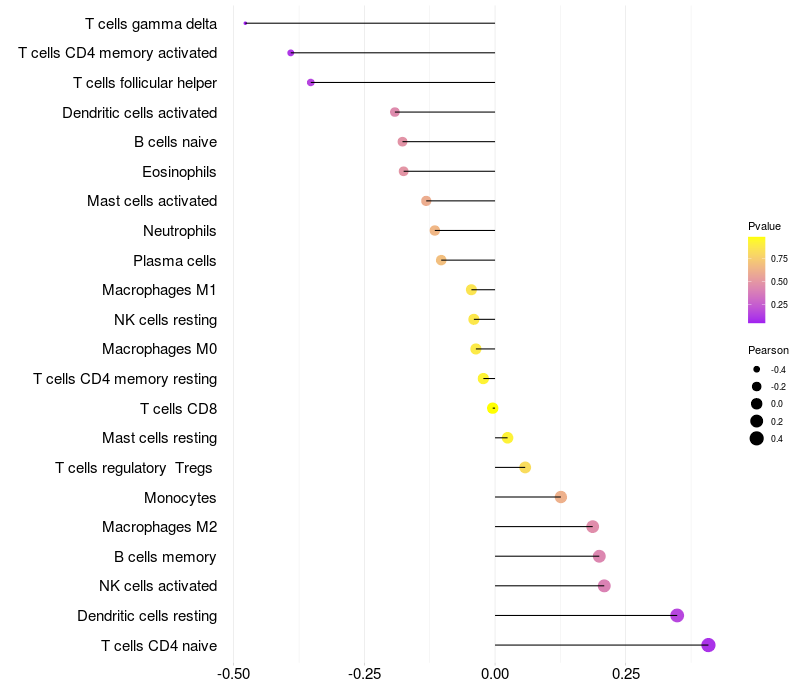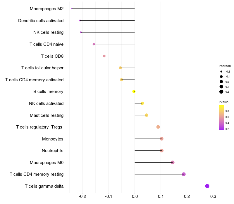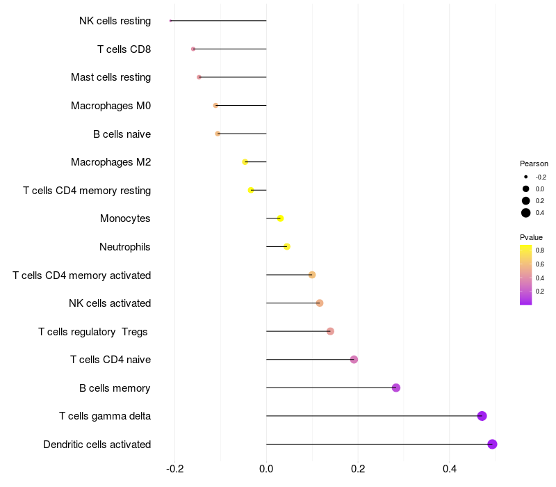 Lollipop of SLC5A11 expression and immune infiltrating cell level correlation result in HTLV1+ samples