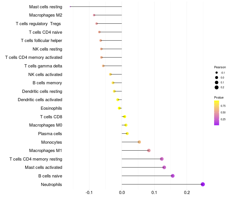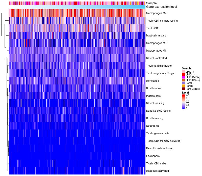 Relationship between gene expression and immune infiltrating cell level