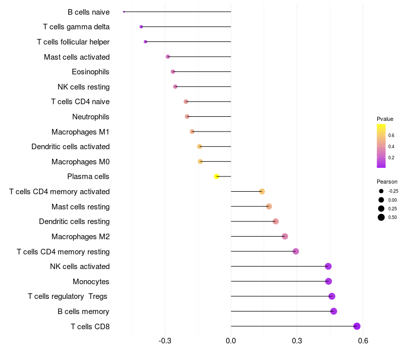 Relationship between gene expression and immune infiltrating cell level