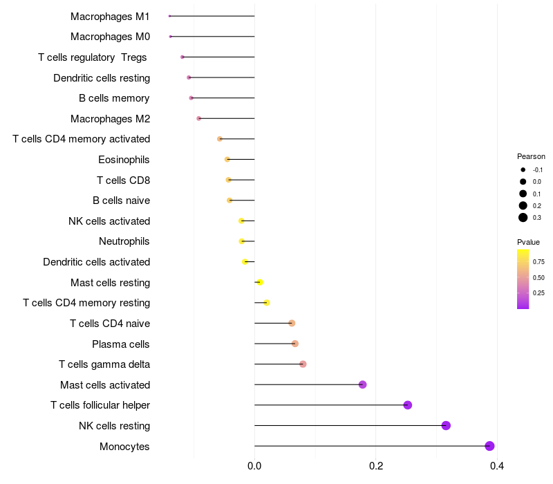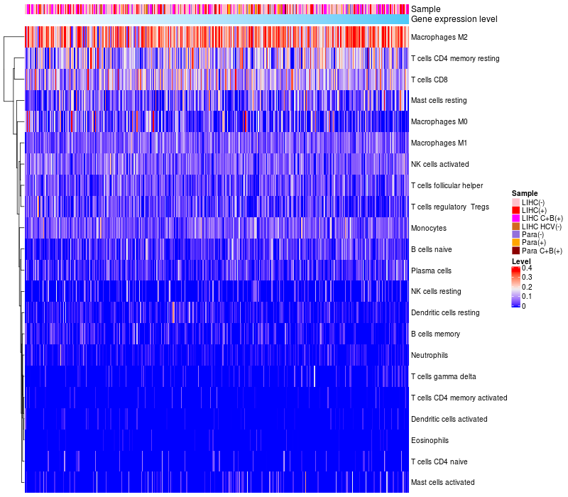 Relationship between gene expression and immune infiltrating cell level